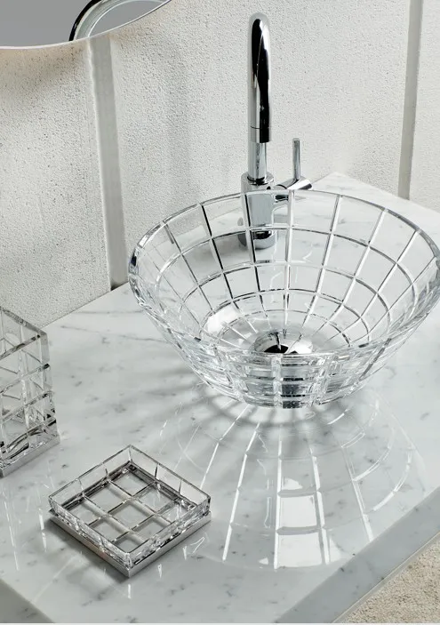 На нашей земле, в Тоскане, существует давняя традиция производства и обработки высококачественного хрусталя 24% Pb. Каждое изделие изготавливается вручную опытными мастерами, так что вы можете рассматривать каждый предмет, как настоящее произведение искусства. Сочетая хрусталь и латунь, мы создали две коллекции, которые превратят вашу ванную комнату в место наслаждения, роскоши и красоты, не забывая при этом о функциональности.