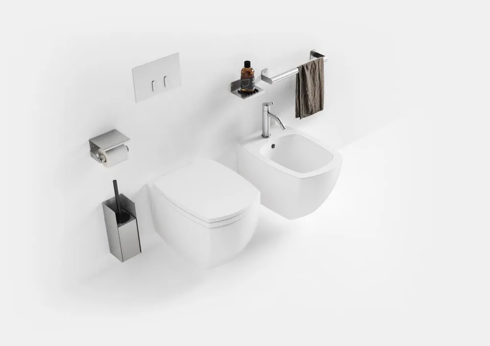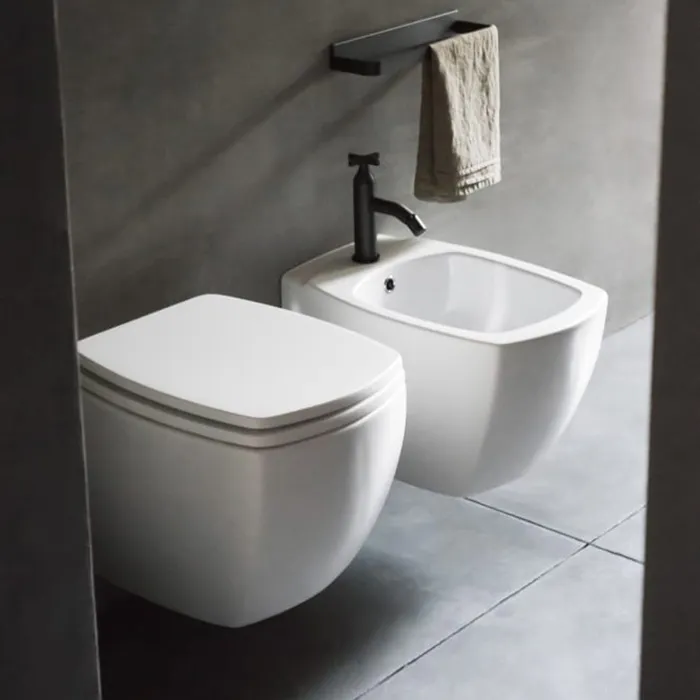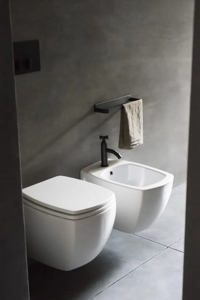Чистые и основные керамические формы для украшения ванной комнаты: это философия коллекции сантехники 750 от Agape, выполненной из керамики в подвесном варианте.