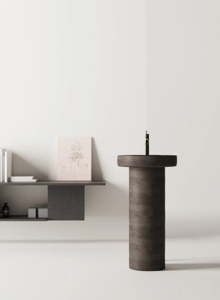 Поразительная игра контрастов между шероховатостью и гладкостью и ручной обработкой, которые делают каждый умывальник уникальным, отличительным и ценным предметом.