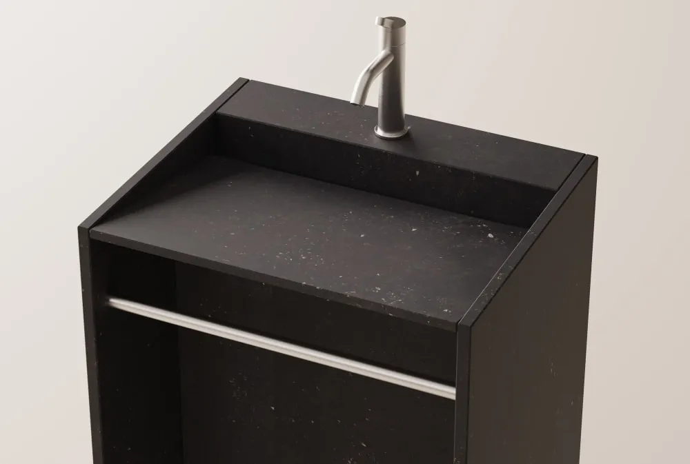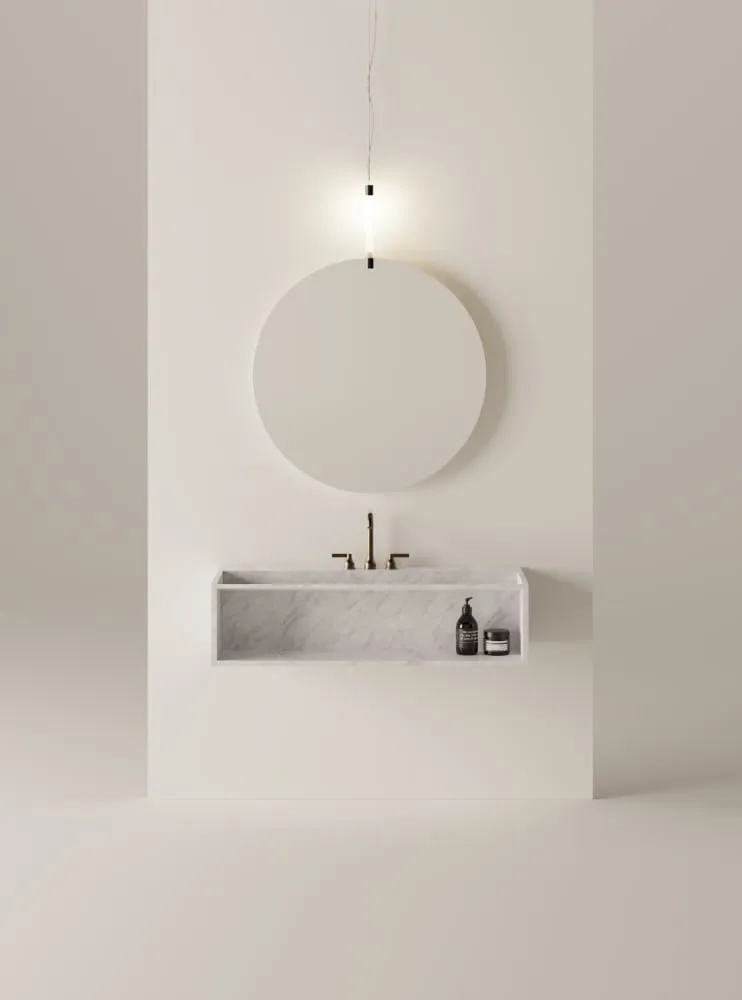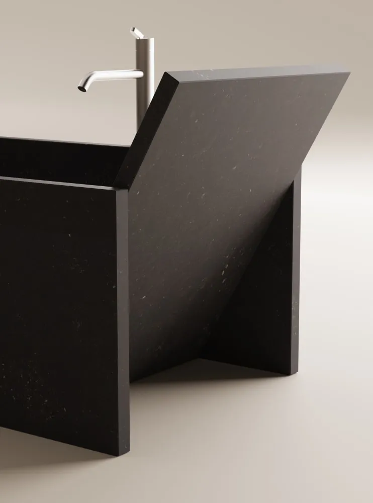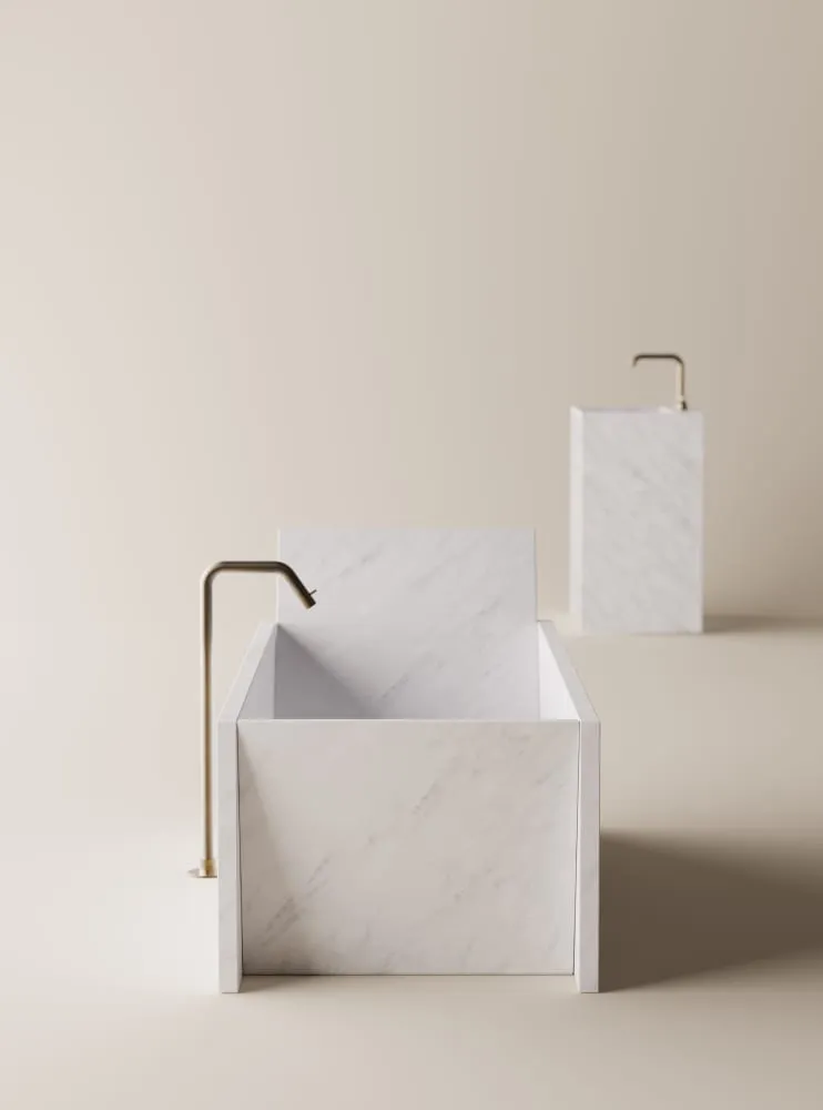 Все они имеют бассейн с наклонной плоскостью и сочетают вертикальные и горизонтальные поверхности в строгой архитектурной структуре, которая может быть интегрирована с полотенцесушителем или отсеком для хранения.