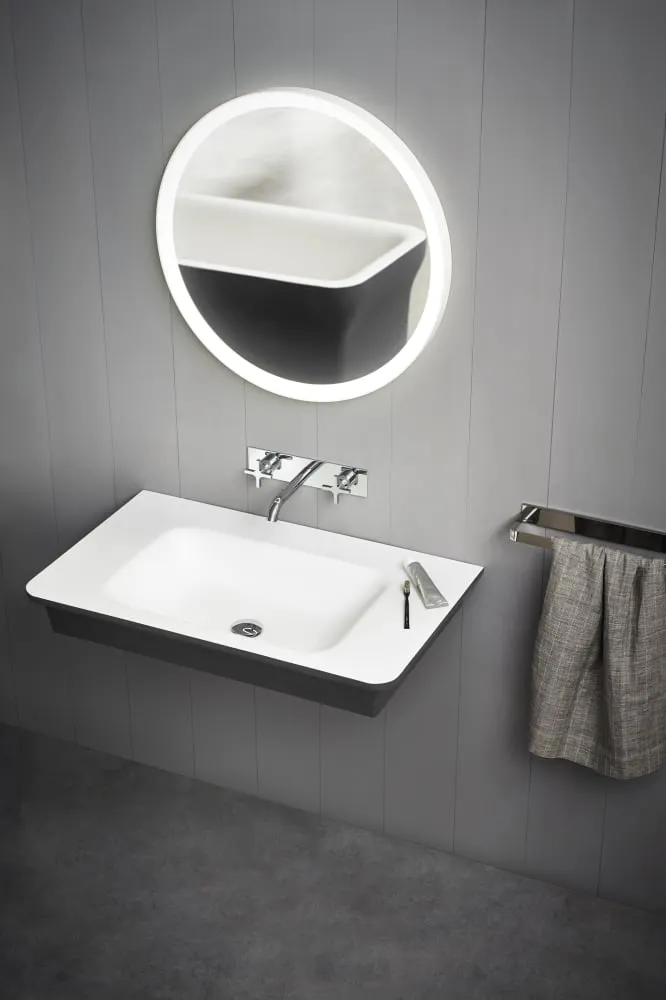 Он предлагается в белом цвете Ceramilux® и доступен в настенном варианте или со структурой из нержавеющей стали.