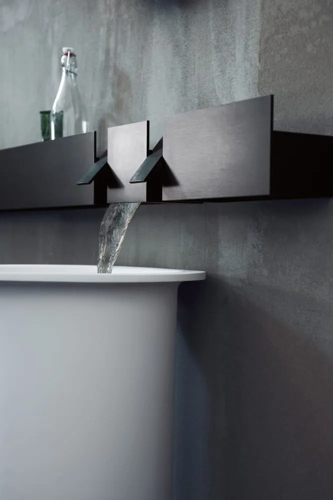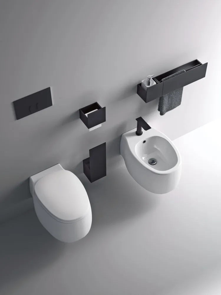 Аксессуары Sen из матового анодированного алюминия с черной отделкой могут сочетаться с одноименной серией смесителей. Учитывая особый силуэт настенных аксессуаров, рекомендуется использовать их на идеально ровных поверхностях.