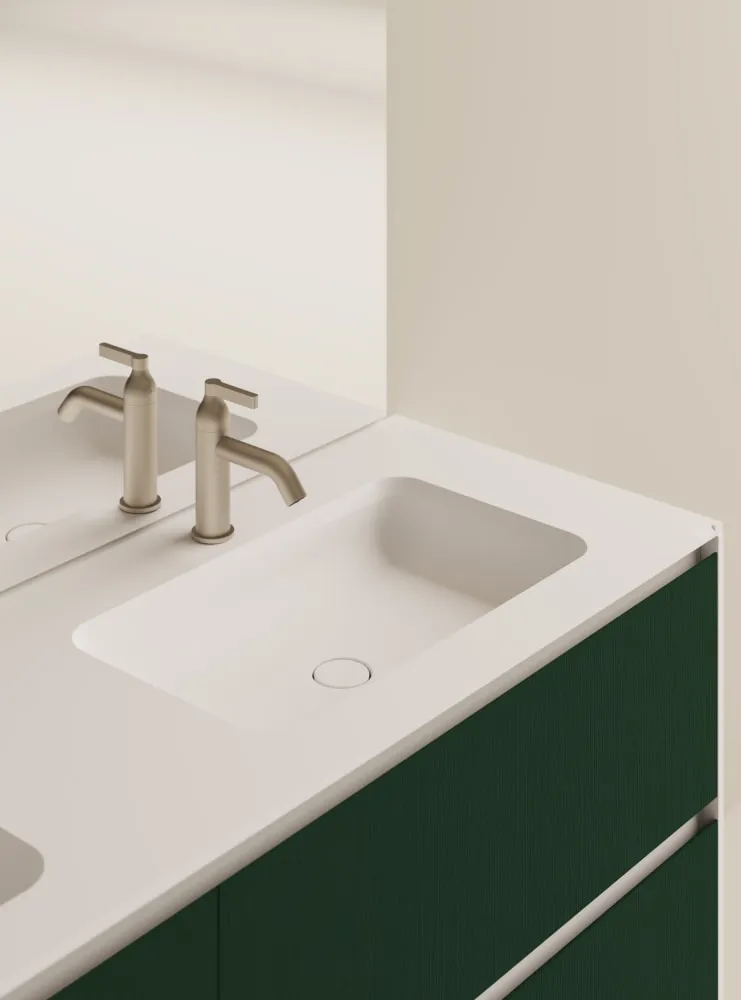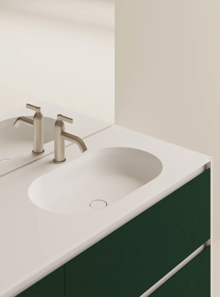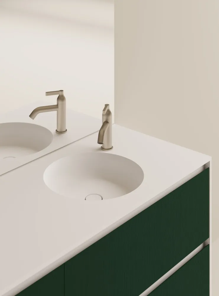 Изготовленные из белой твердой поверхности с термоформованием, они бывают трех форм: круглой, овальной или прямоугольной; они могут быть размещены на всех плоскостях Agape или под плоскостями Evo 21 из того же материала, став интегрированными элементами на одной плоскости.