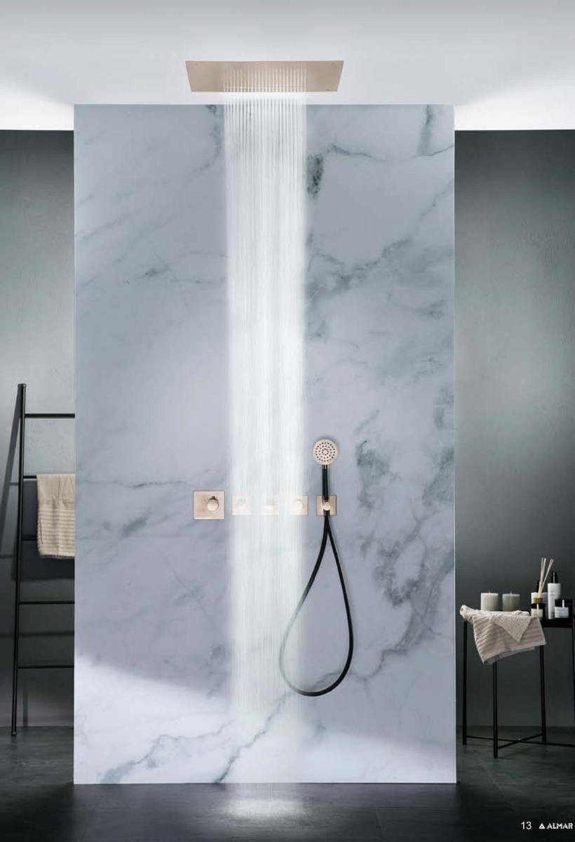 Сложное решение, которое позволяет вам настроить душевую систему, настраивая количество струй, ориентацию смесителя и стиль ручек. Для принятия душа, который превращает ванную комнату в спа.
