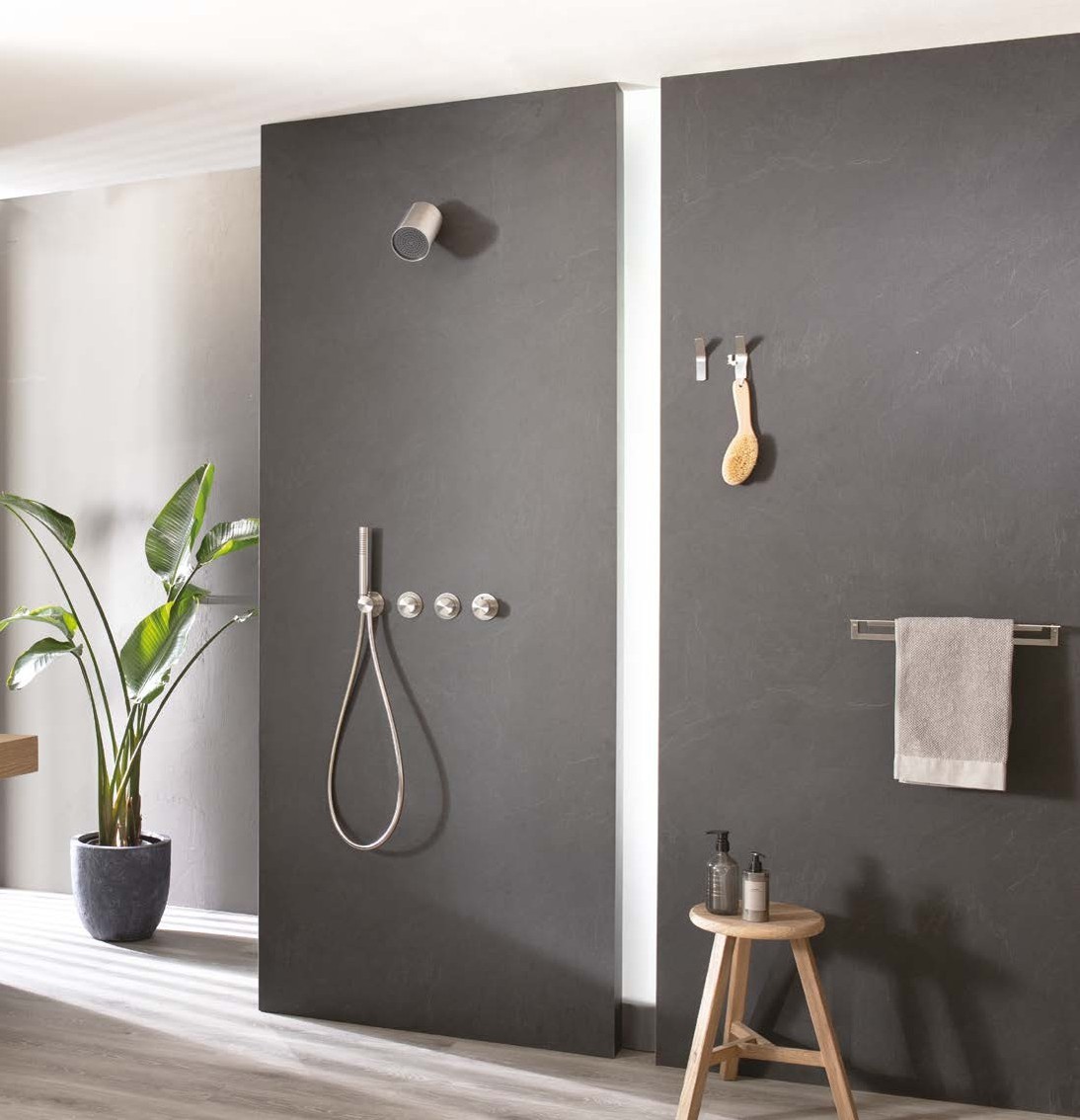 Коллекция Modular от Almar позволяет сократить пространство для установки и получить многофункциональную душевую систему с розетками одинакового размера.