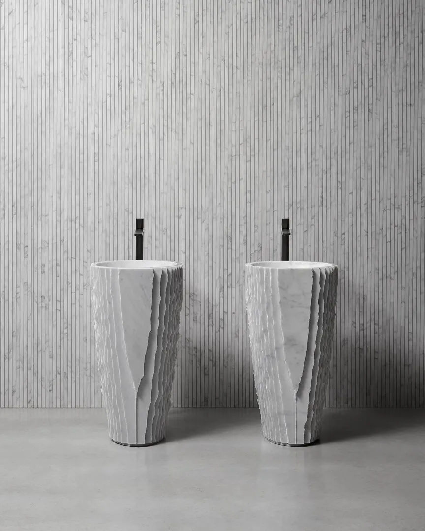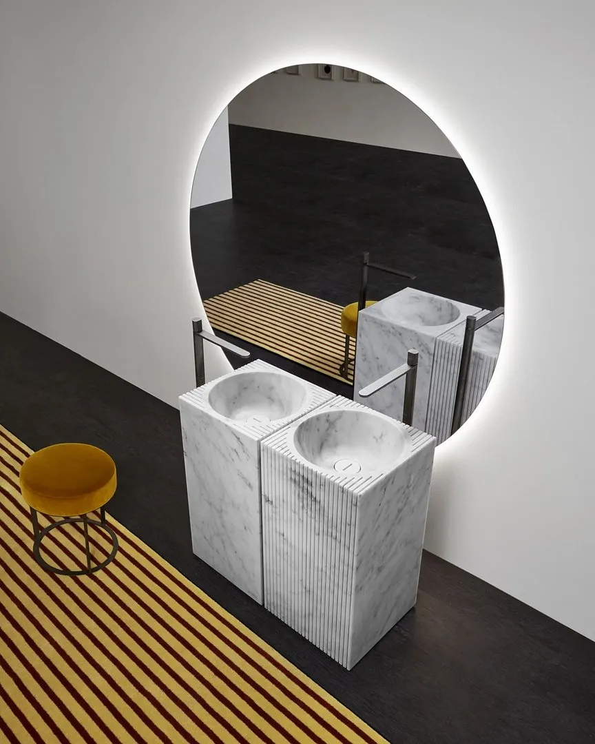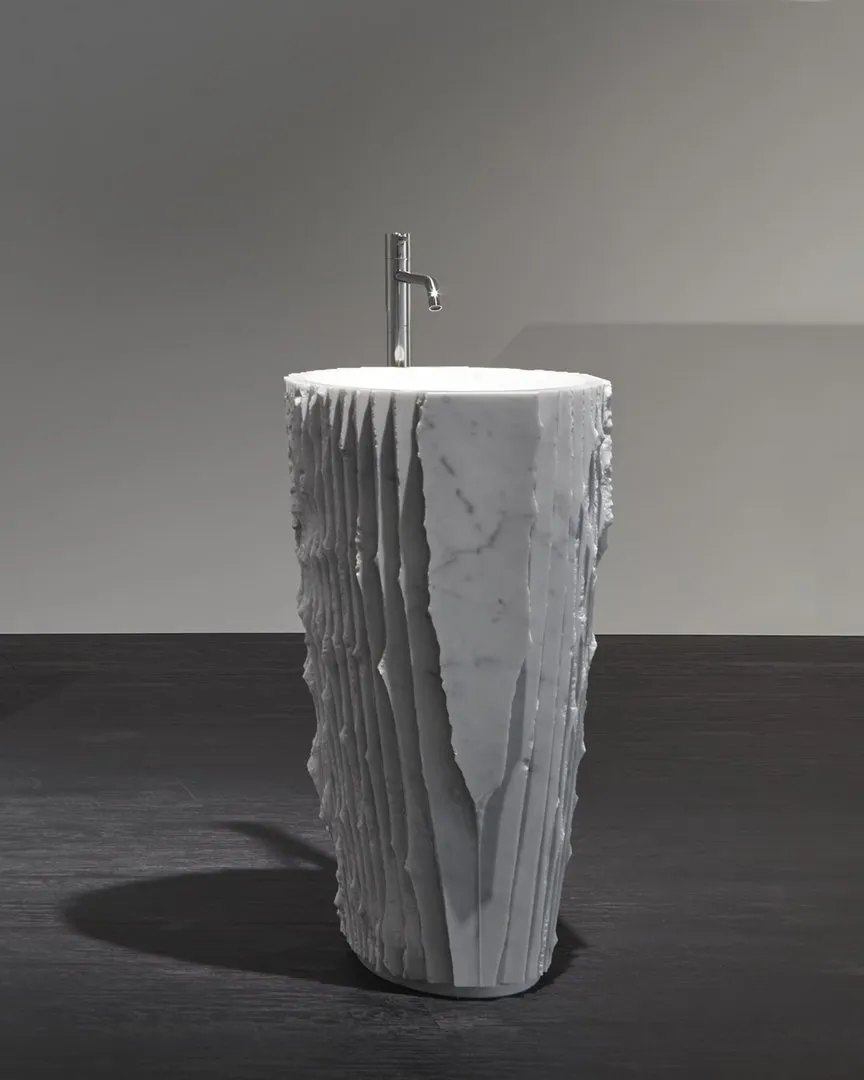 Мраморный блок пересекается фрезерным станком, а затем интерпретируется человеком для создания различных форм. Предложение, основанное на уважении к природе, разделяемом Паоло Ульяном и Antonio Lupi, - дорожки из мрамора в разных коллекциях, которые вписываются в путь, проложенный мастерами, которые всегда интерпретировали этот благородный материал.