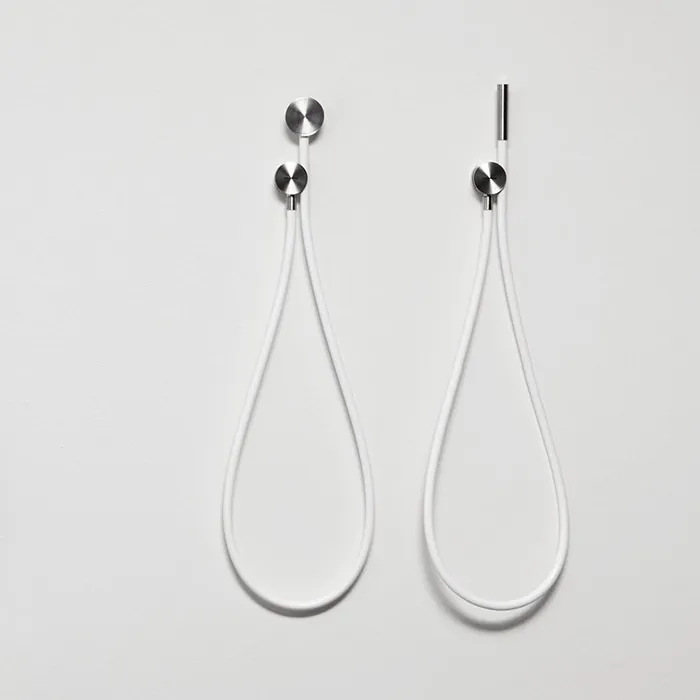 Полностью силиконовый шланг, доступный в черном, белом и сером цветах, создает на поверхности волнистый узор, который становится "плавающим украшением". После использования душ можно установить на боковое соединение или, в качестве альтернативы, на подставку.