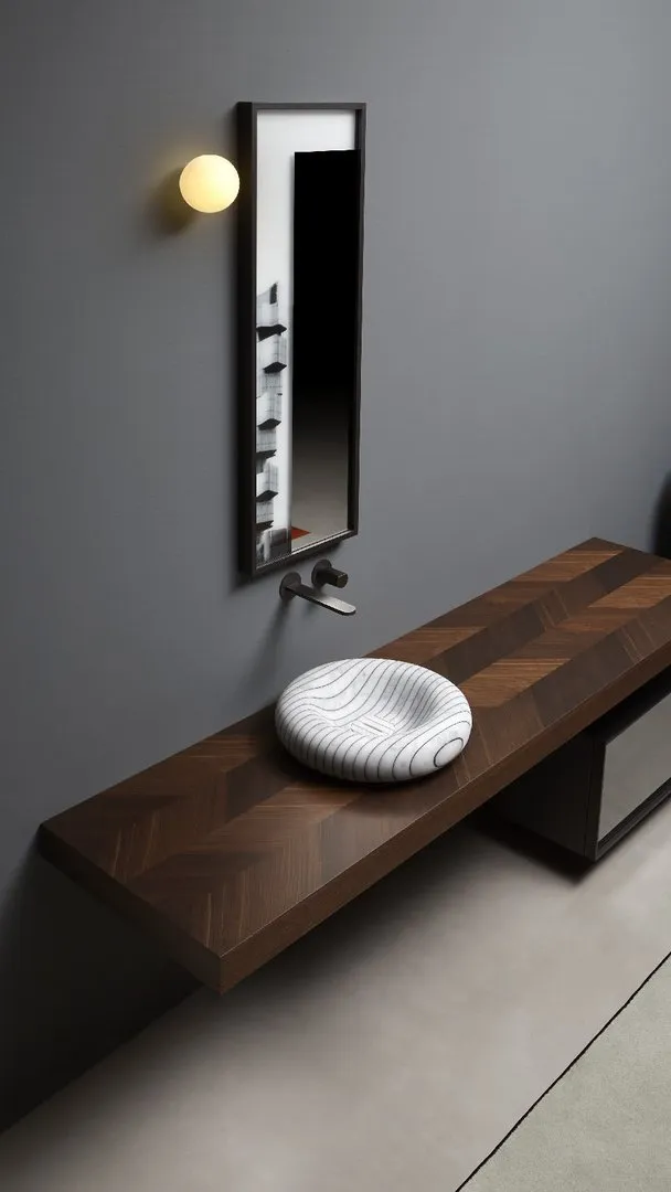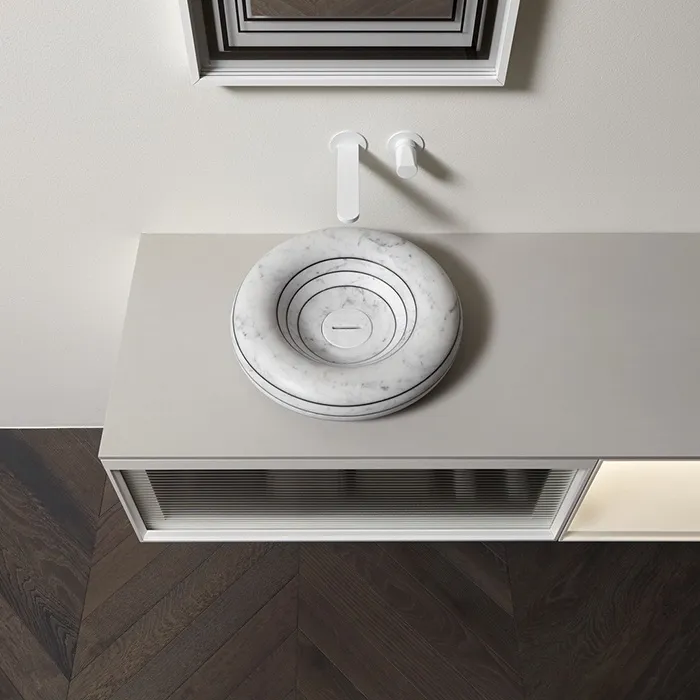 Круглые, овальные или квадратные раковины Gessati придают ванной комнате энергию и индивидуальность благодаря параллельным линиям, которые проходят по изогнутым поверхностям, определяя новые перспективы и направления.