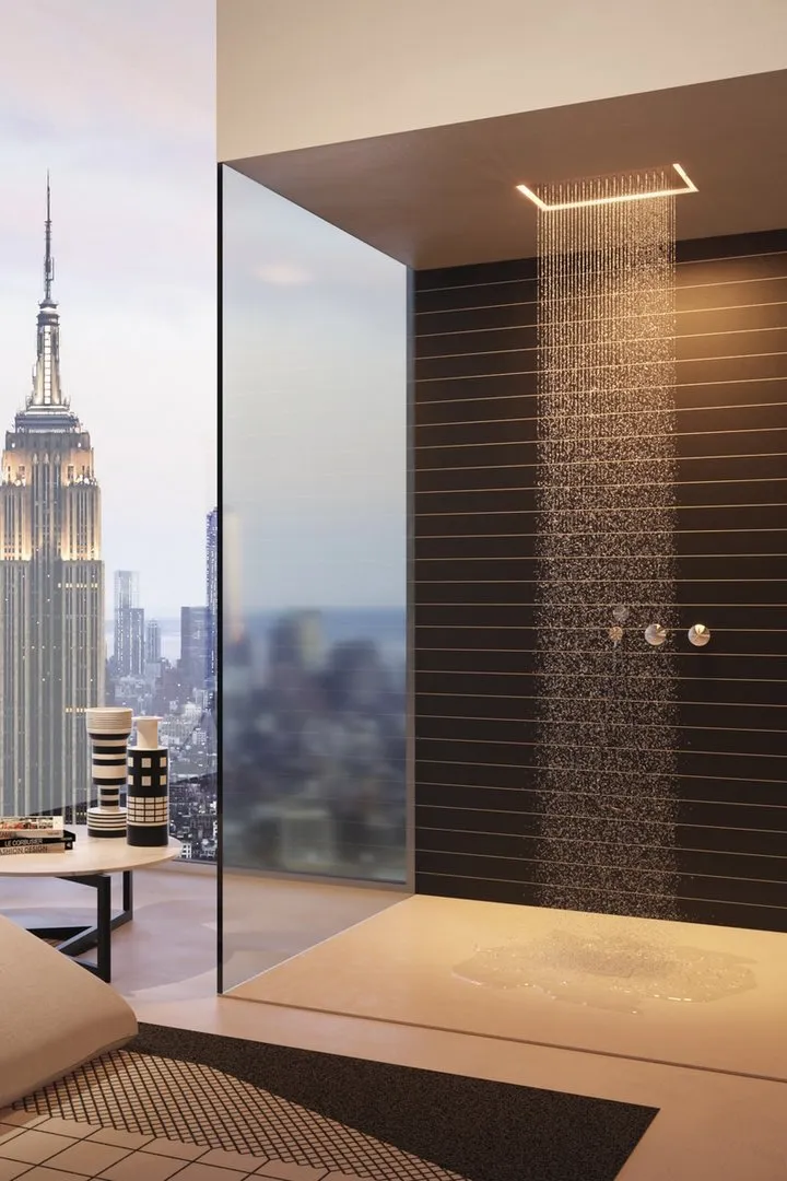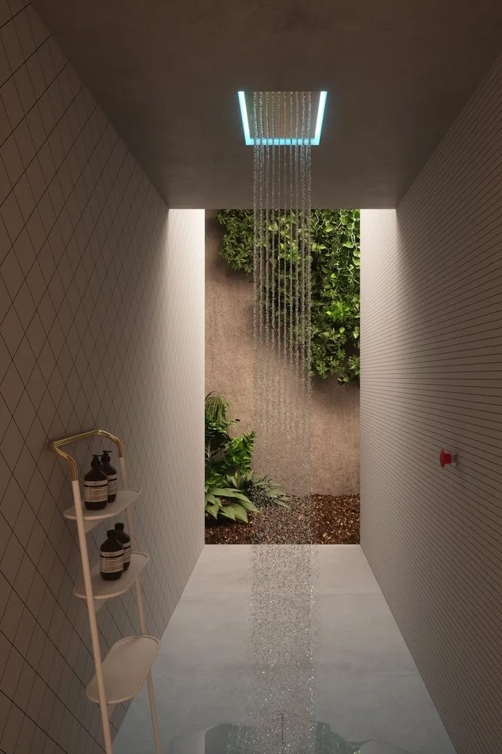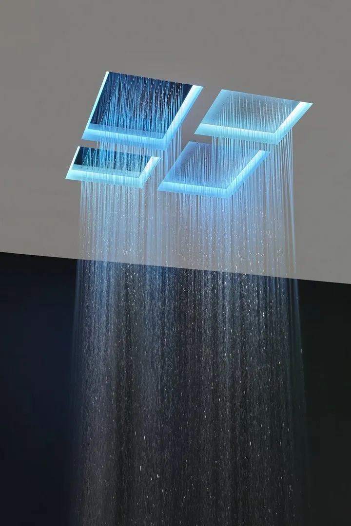 Квадратная или прямоугольная форма, тропический душ по периметру или водопад в центре (только в прямоугольной форме).
