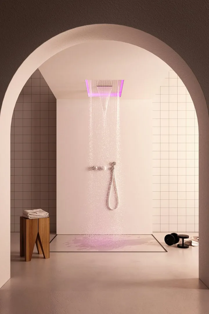 Коллекция Meteo - это проект, родившийся в 2011 году и отличающийся крайней строгостью, сочетающейся с высокотехнологичным инновационным минимализмом, объединенным для передачи эмоций и уникальных ощущений. Meteo - это насадка для душа в корпусе из зеркальной нержавеющей стали или белого цвета, которая может быть оснащена светодиодной rgb-подсветкой и настраиваемым белым светодиодным освещением от 3000 до 4000 К. В комплект входит пульт дистанционного управления.