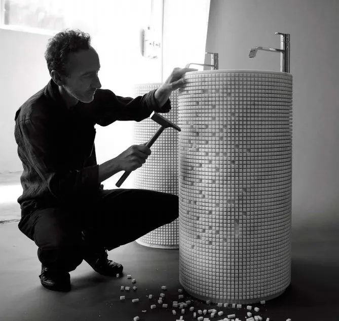 Традиция сочетается с технологией в разложенной по полочкам стандартной форме, разделенной ортогональной решеткой, представляющей собой цилиндрический объем, на котором машина нанесла четкий и определенный знак в соответствии с проектом, открывающим бесконечные возможности для создания композиции. Отдельно стоящая, постоянно меняющаяся раковина, благодаря отсутствию деталей, позволяет воображению обрести форму, раскрыть образ, выявить суть. Свет и тени, глубина и рельефы, сочетания и расстояния, соединения и изоляция. Пиксельная композиция, которая формирует чашу, полностью ориентирована на логичность, близость и благопристойность, которые проистекают из самого материала. Жест вычитания, раскрывающий форму, который позволяет изменять объем и который усиливает трехмерный дизайн проекта. Коллекция Pixel от Antonio Lupi - это вычитание для составления композиции.