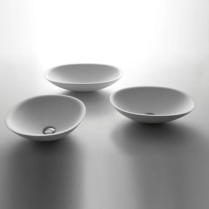 Прочные скошенные края и закругленные бока создают коллекцию умывальников Servo от Antonio Lupi круглой и овальной формы и сужающихся к основанию.