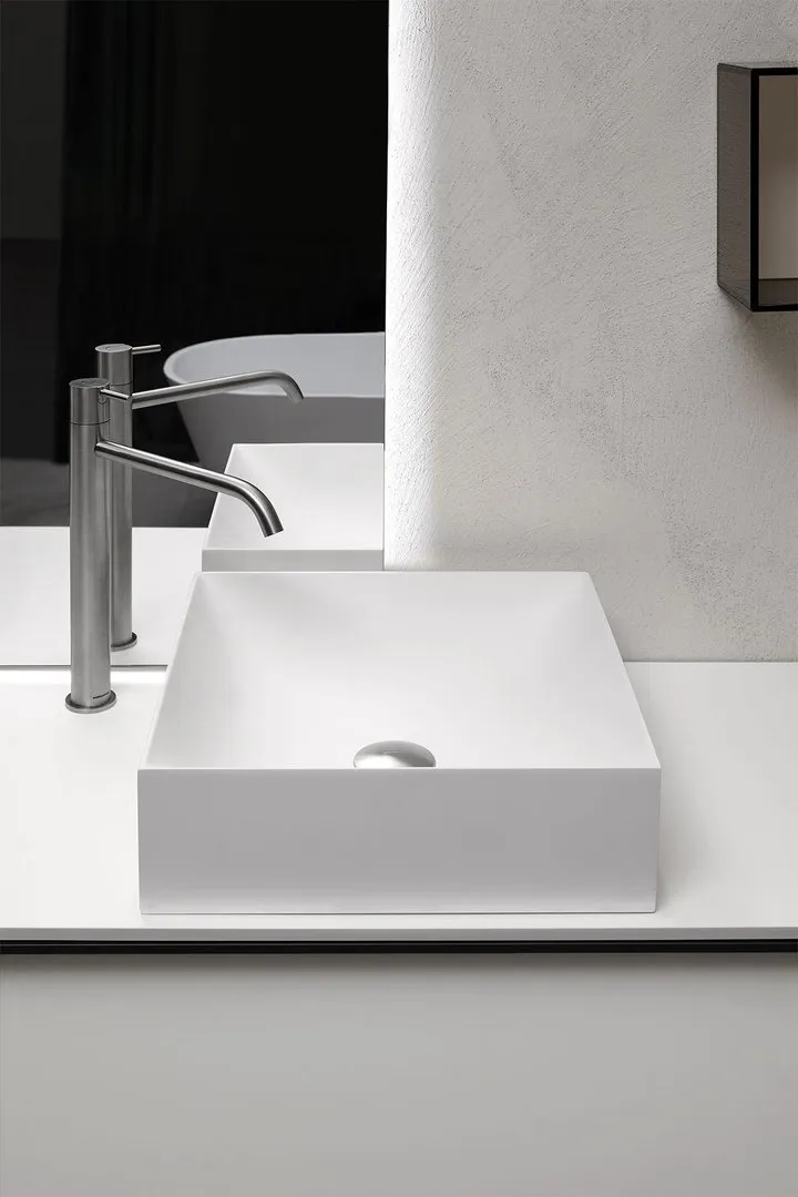 Скульптурная форма, объем, идеально созданный из первозданной силы воды. Stratos - это умывальник, изготовленный из материала Flumood или Colormood, запатентованного компанией Antonio Lupi, и доступный в квадратной или прямоугольной форме с двумя вариантами высоты (12,5 и 18,8 см).