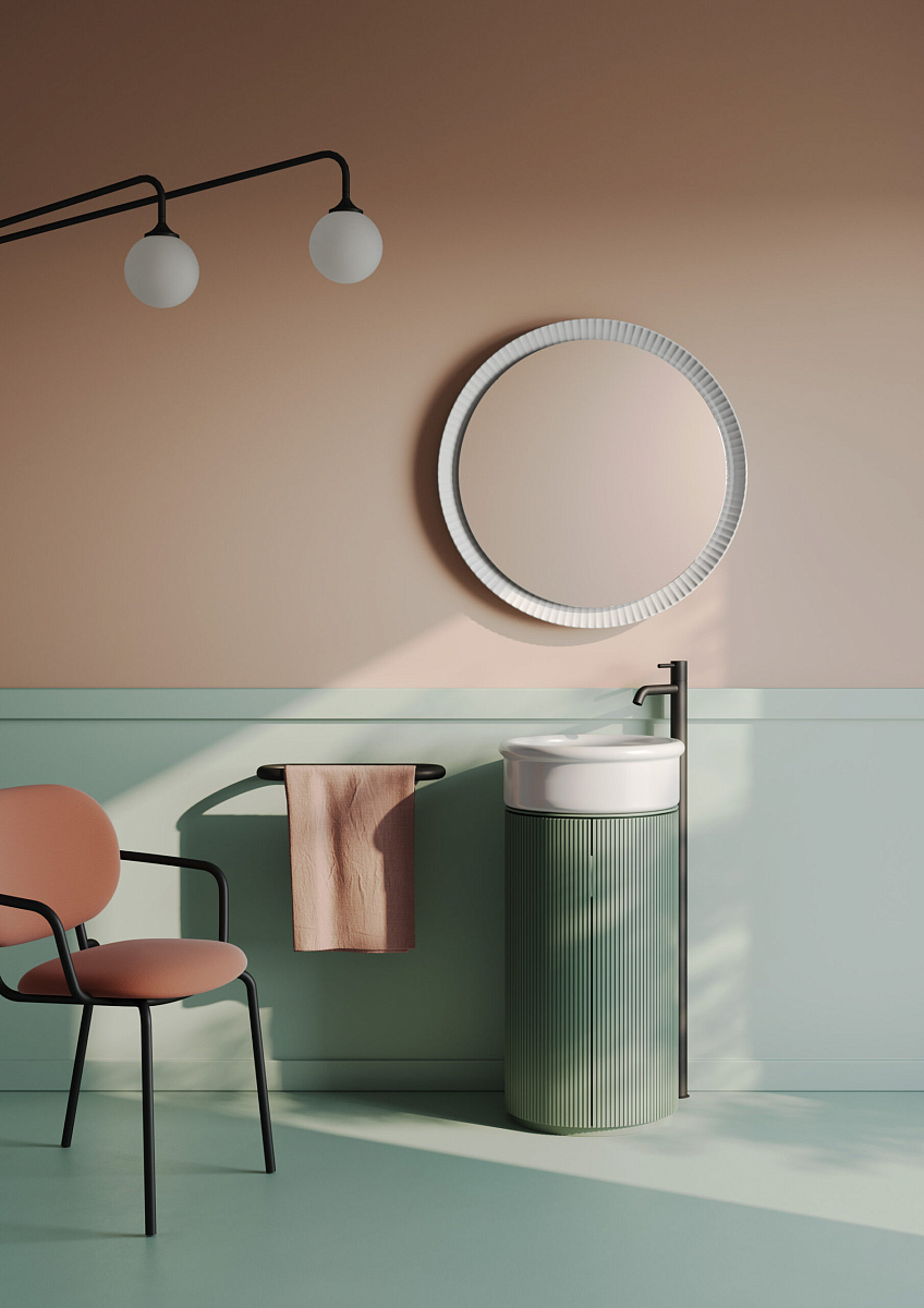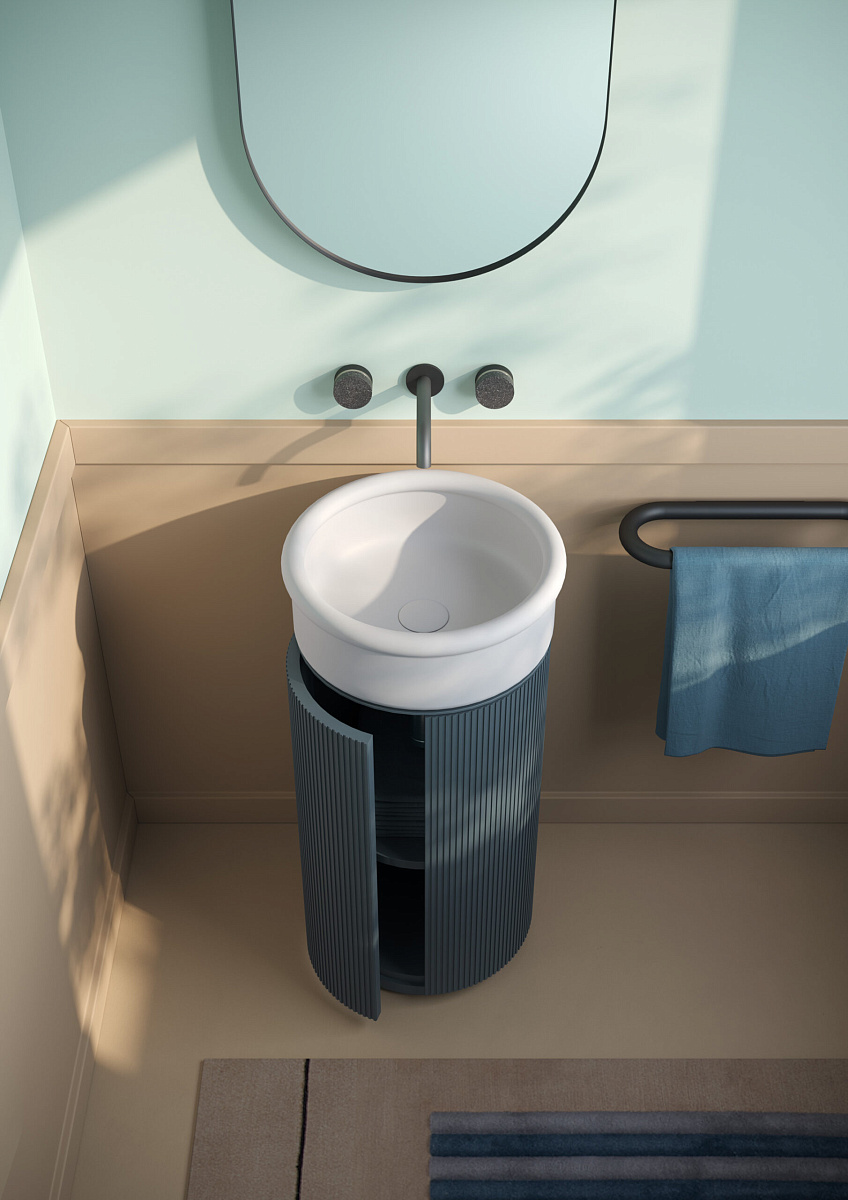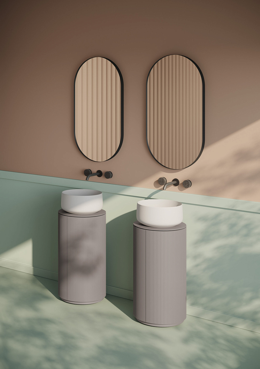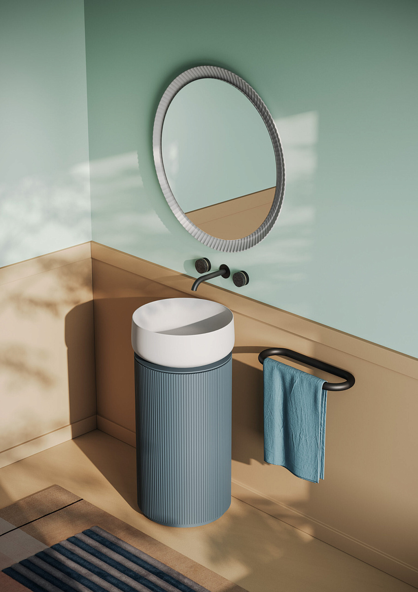 Цилиндрическая текстурированная колонна поддерживает и превращает соответствующие раковины и многое другое в настоящие отдельно стоящие устройства.