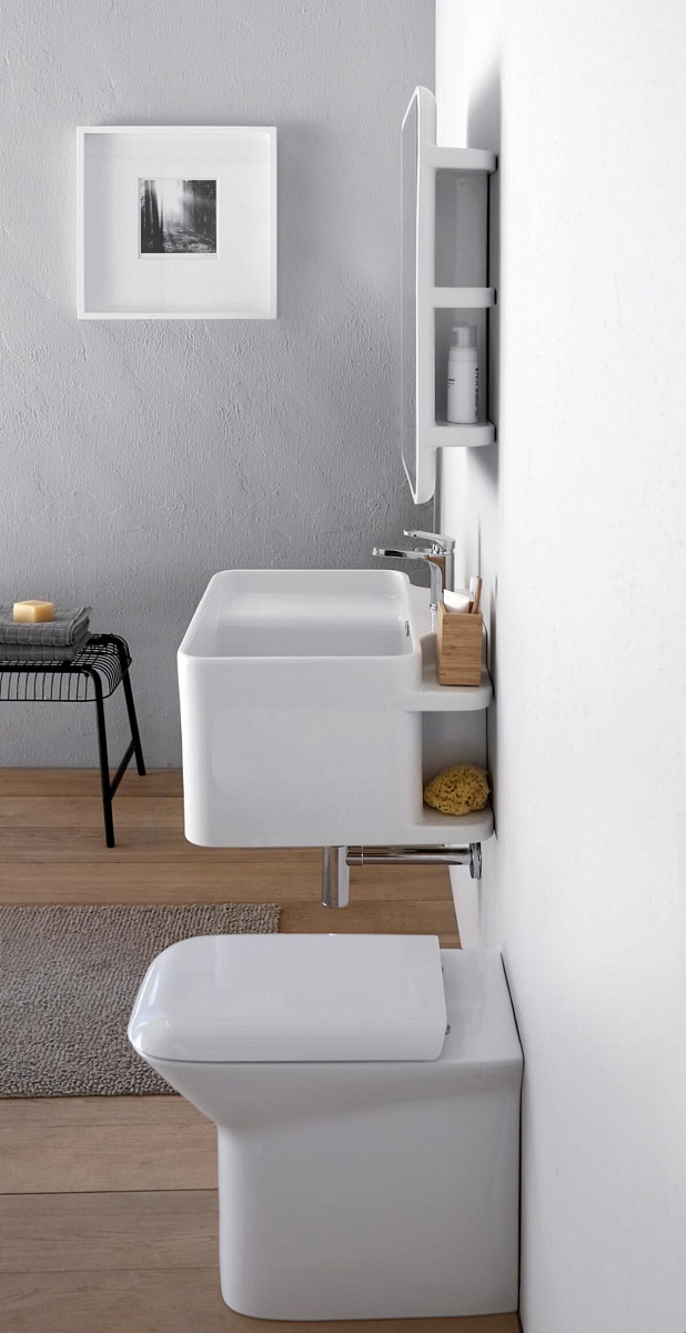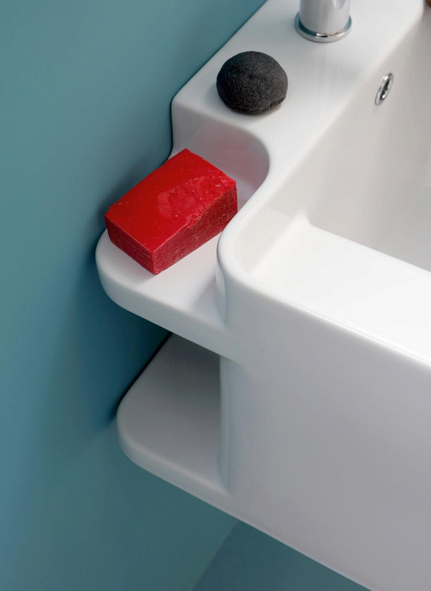 Разработанный для обеспечения максимальной функциональности, Anfibio от Azzurra имеет встроенные столешницы для хранения и дополняется керамическим зеркалом.
