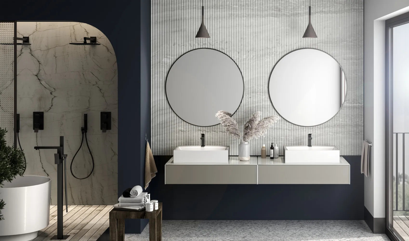 Коллекция Aki от Bossini - это смесители для мебели, с предметами мебели, распределяющими воду.
