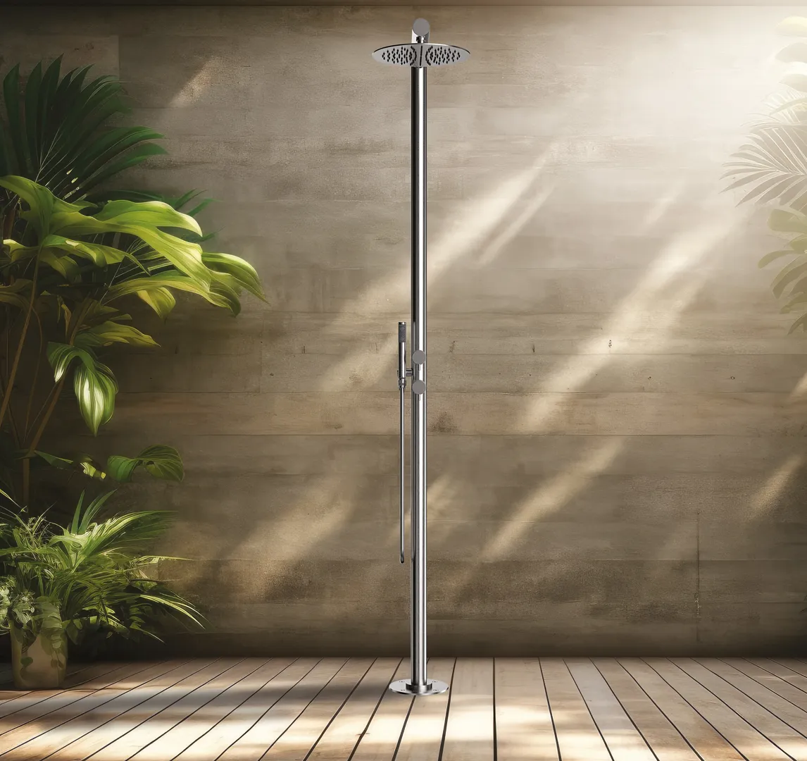 Повысьте элегантность и функциональность с помощью наших уличных душей коллекции Colonne Piscina от Bossini, которые станут идеальным завершающим штрихом престижных архитектурных проектов.