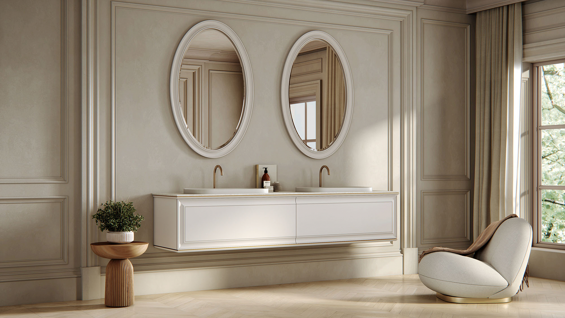 Простые, но в тоже время массивные фрезерованные фасады коллекции Lester от Brenta– это немаловажная деталь классического стиля. Отличительной особенностью фасадов Lester является то, что фрезеровка рамки фасада выполнена по всей длине и высоте тумбы без разделения на отдельные ящики.