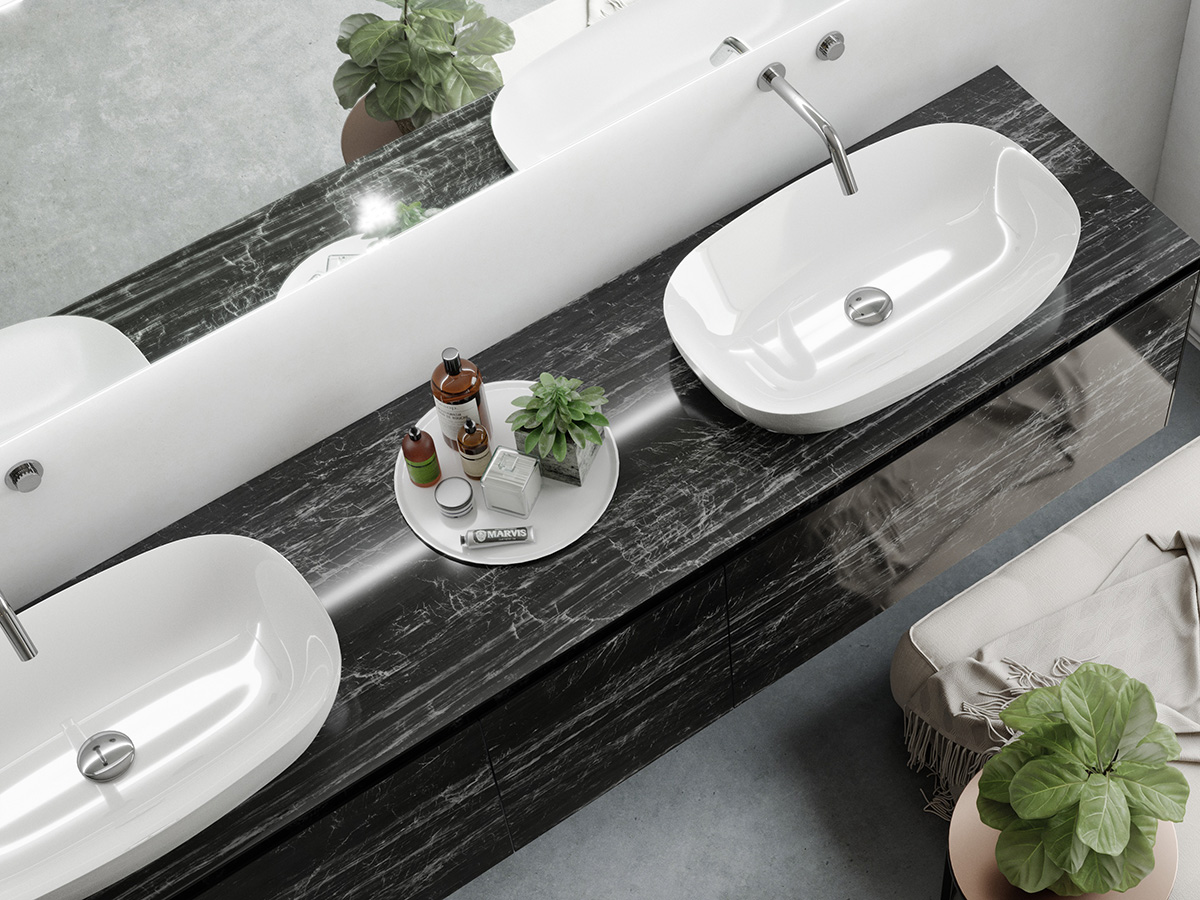 Чёткое сопряжение элементов и идеальные линии, внимание к деталям и фактуре материала, использование современных технологий обработки керамогранита, индивидуальный подход к модельному ряду, который обеспечивает эксклюзивность каждого изделия. Всё это позволяет добиться высокого качества исполнения всех деталей и элементов мебели.