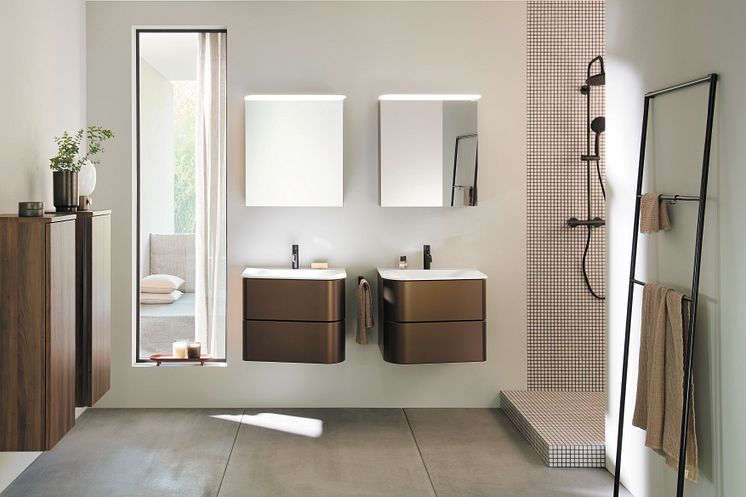 Бренды-производители мебели для ванных комнат, стремящиеся к экологичности, такие как Burgbad, незаметно объединяют элементы стиля жизни и модные отделки, такие как элементы стиля середины века в коллекции Badu, в прочный дизайн.