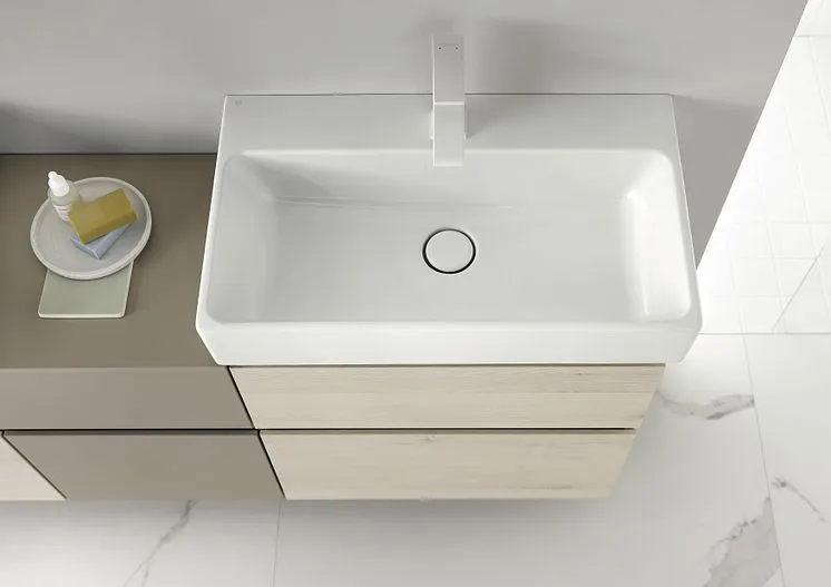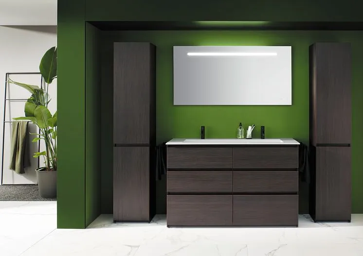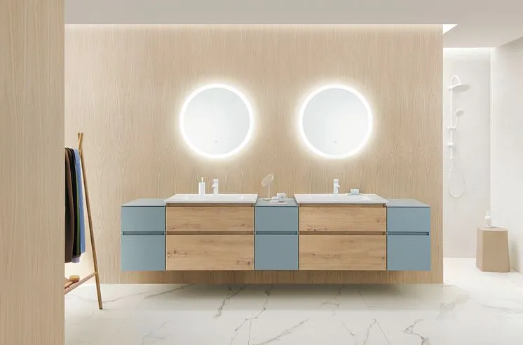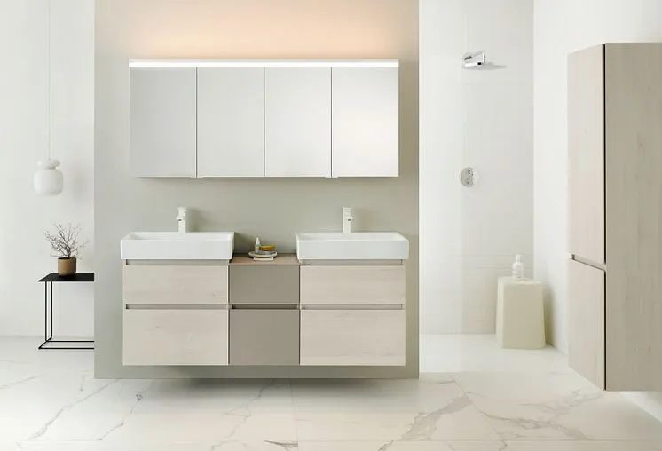 Новая коллекция Lin20 от Burgbad предлагает минималистичные туалетные столики и шкафы с минималистичным дизайном с минималистичным дизайном, выполненные из дубового декора, мериноса и базальтово–серого матового цвета.