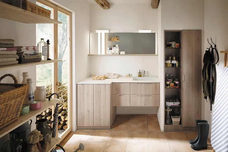 Оптимально подобранная мебель и индивидуально подобранное место для хранения вещей. Универсальная программа Burgbad Sys30 найдет решение для любой задачи - стиральная машина и встроенный шкаф по желанию.