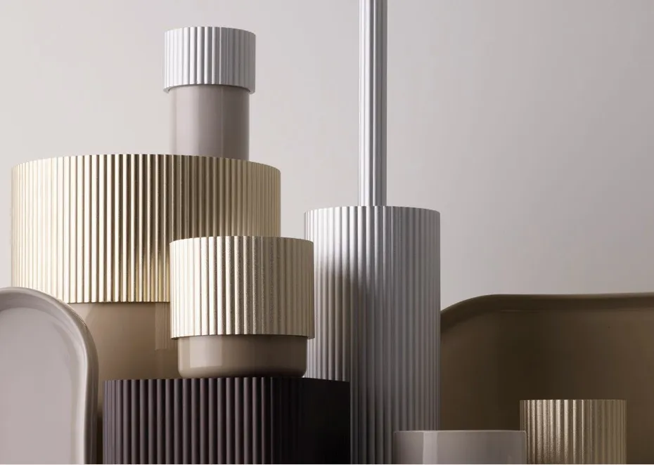 Новые аксессуары для ванной комнаты коллекции Of.Line от Decor Walther характеризуются захватывающим сочетанием материала.