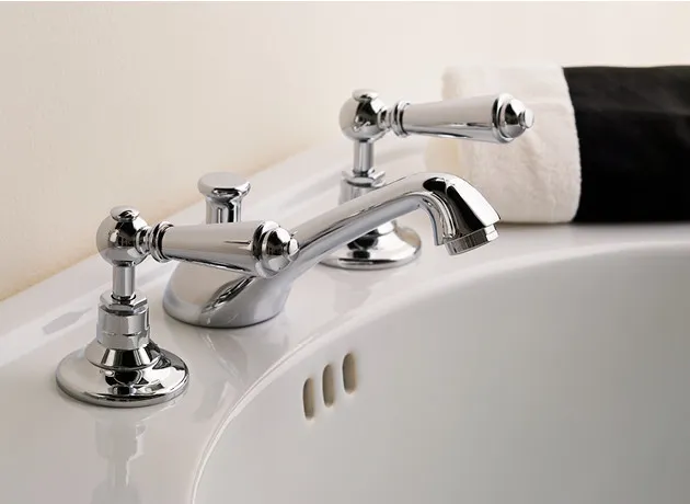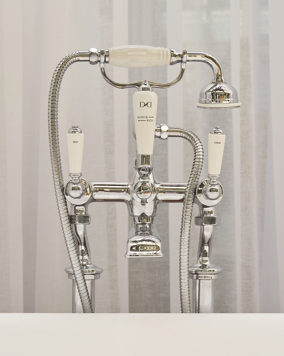 Сдержанный и изысканный дизайн элегантной коллекции для ванны Dandy от Devon&Devon с ручками из тонкого фарфора.
