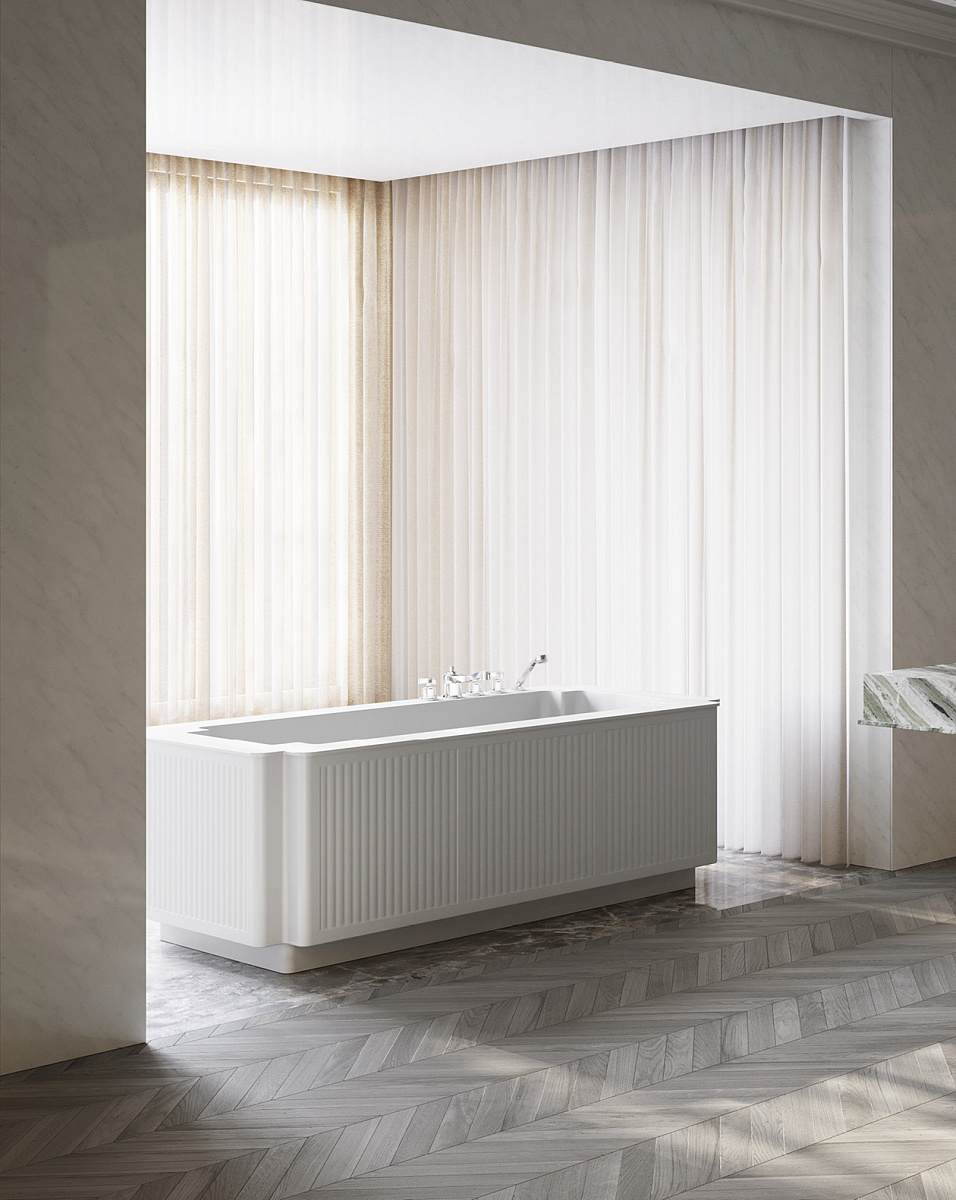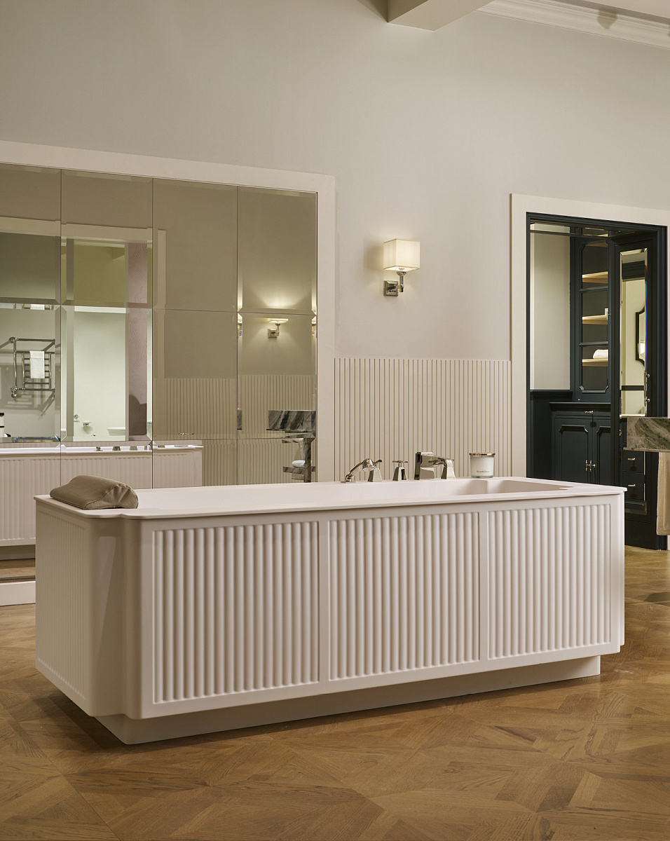 Эта большая ванна коллекции The Thirties от Devon&Devon предназначена для ванных комнат самых роскошных отелей и самых эксклюзивных частных домов.