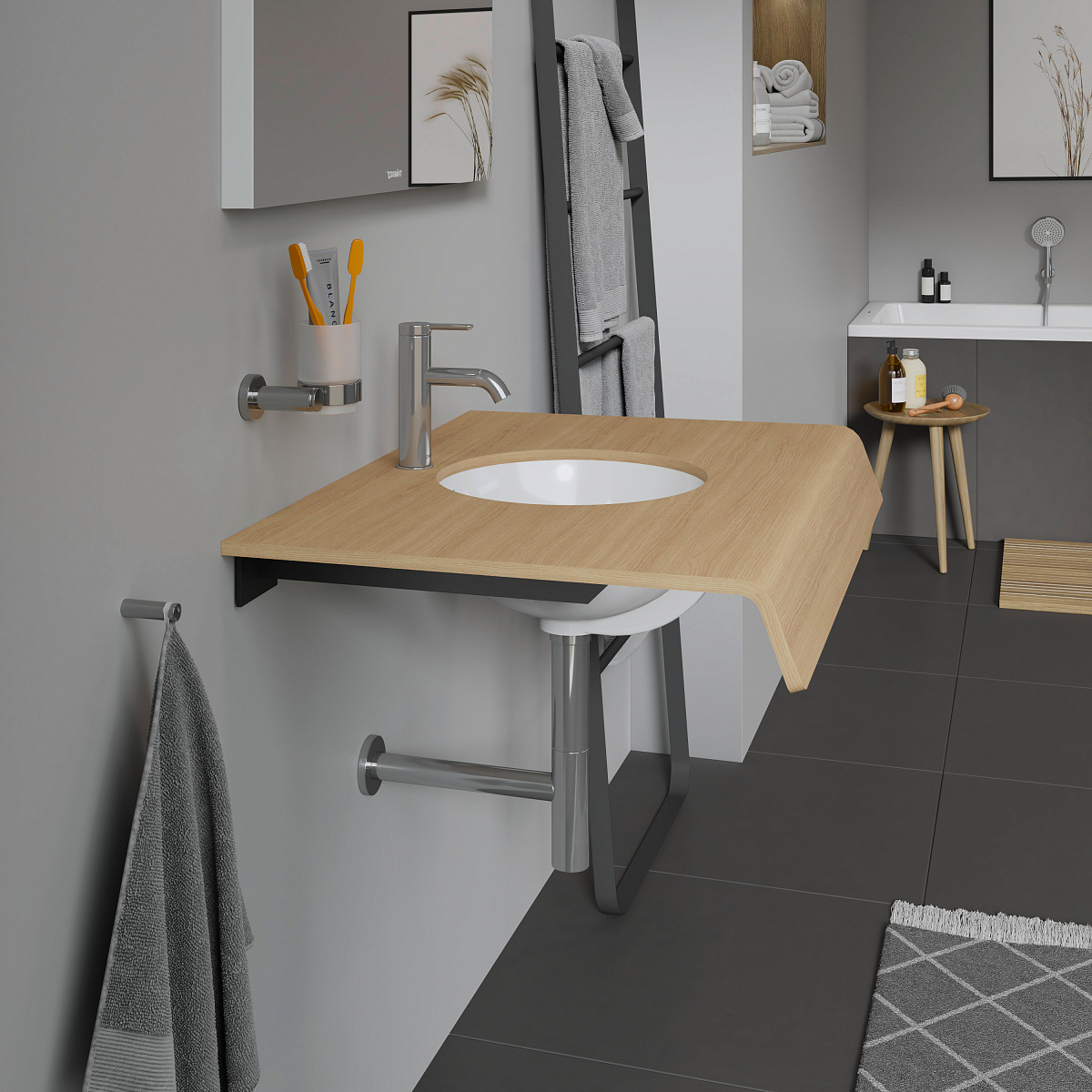 Основных архитектурных элементов — кругов и квадратов — было достаточно, чтобы создать простой и современный язык дизайна и разработать широкий ассортимент продукции практически для любого применения, будь то в частных, общественных или безбарьерных помещениях.