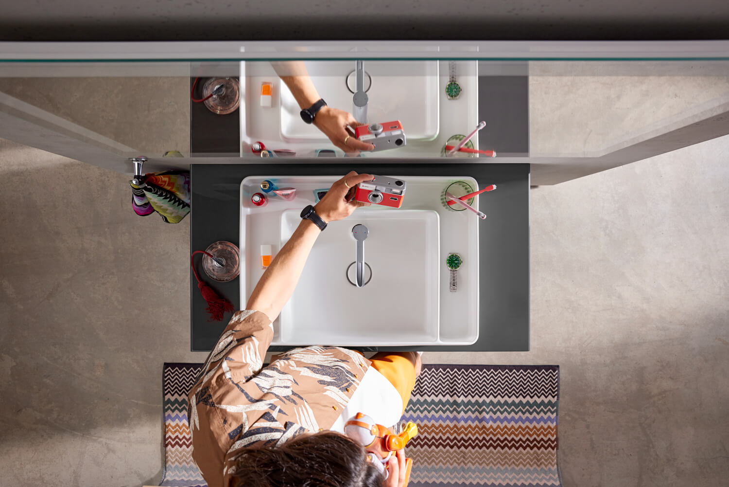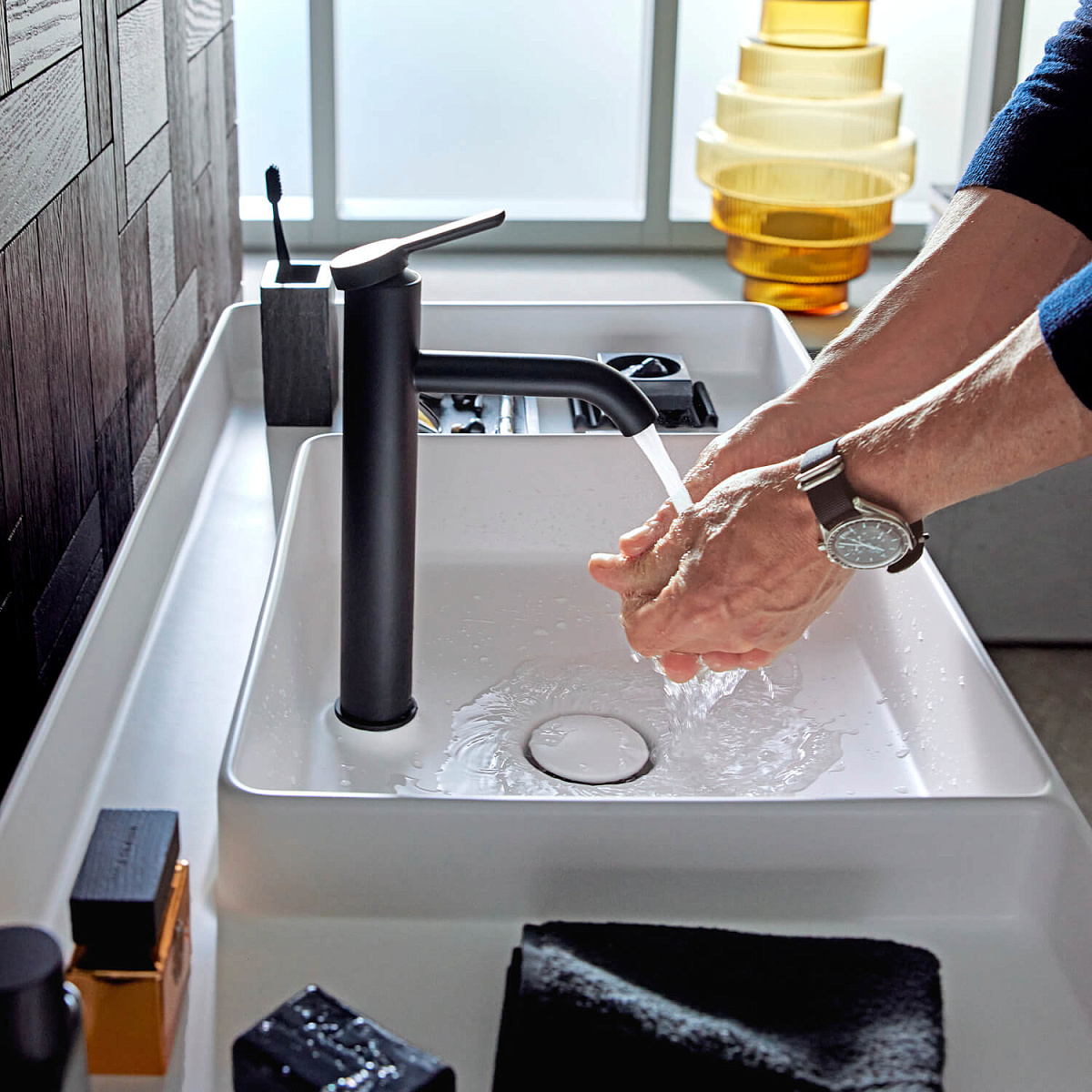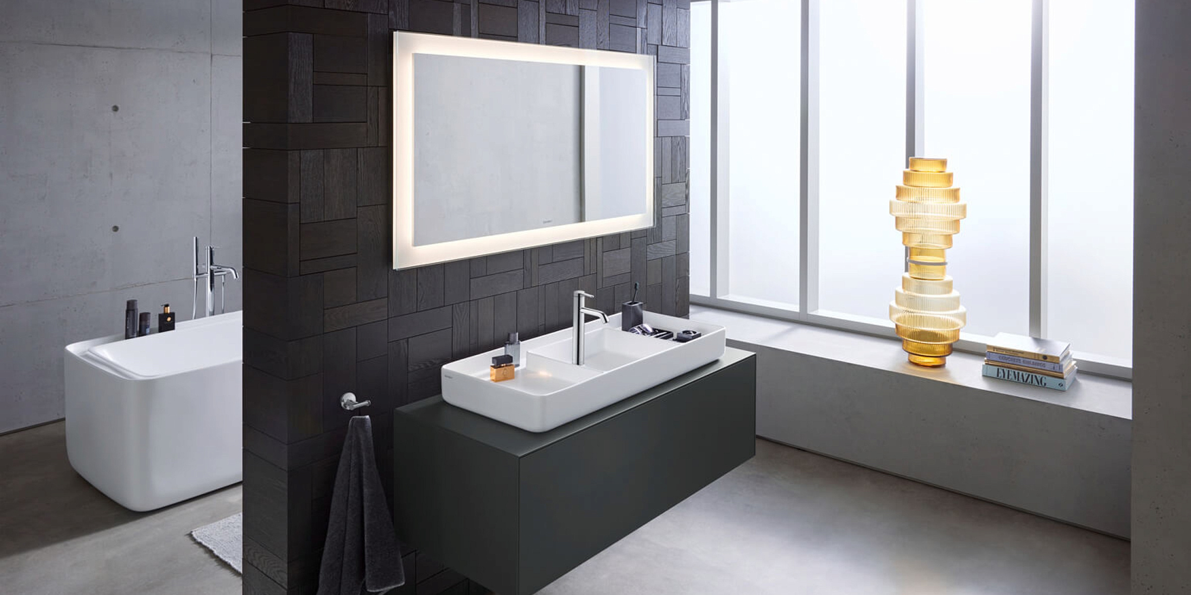 Благодаря продуманному разделению на мокрую и сухую зоны четко структурированные раковины и ванны открывают бесчисленные возможности для индивидуального дизайна.