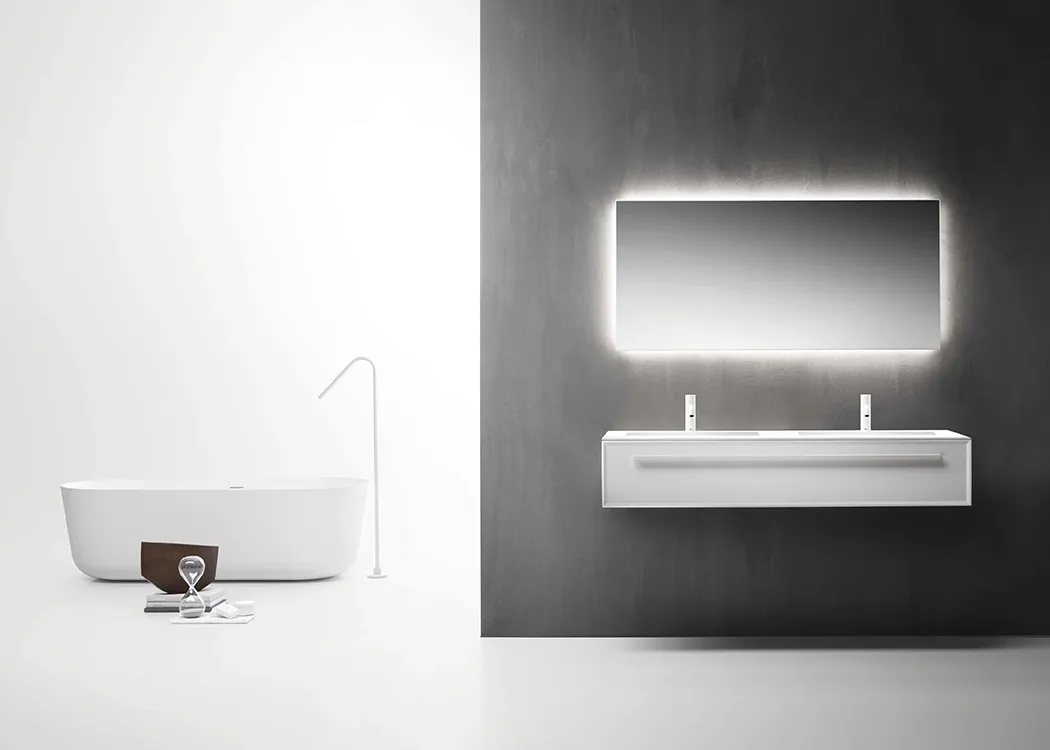 Интегрированные столешницы изготовлены из Cristalplant Biobased — прочной поверхности на растительной основе, которая гарантирует превосходные эксплуатационные характеристики в сочетании с тактильным эффектом и мягким равномерным отражением света. На все изделия Falper Cristalplant Biobased распространяется специальная 5-летняя гарантия.