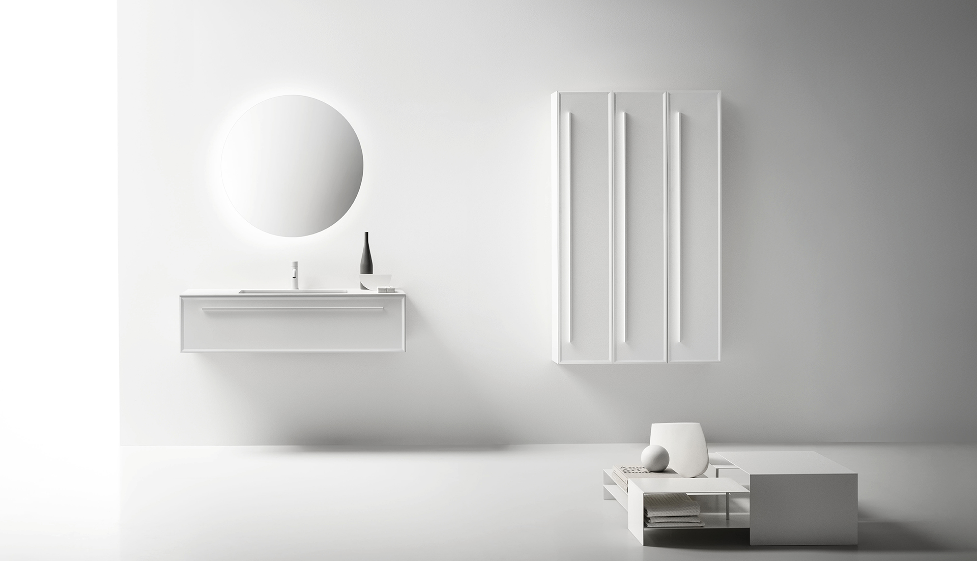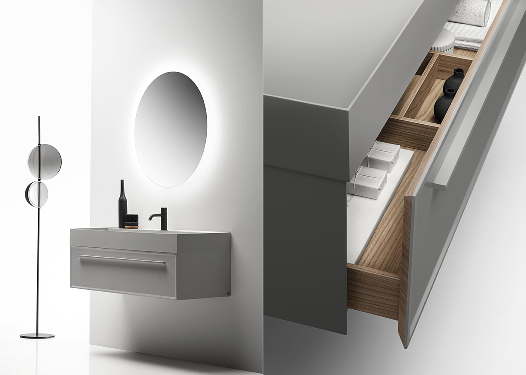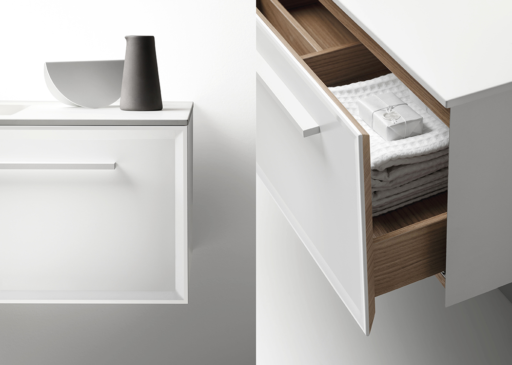 Коллекция 7.0 включает в себя тумбы под раковину, шкафы, колонны, встраиваемые раковины и раковины на столешнице, что позволяет создавать интерьерные решения для ванных комнат разных размеров благодаря широкому выбору доступных размеров. Характерной особенностью этой коллекции является кромка, срезанная под углом 45 градусов, которая придает ей решительный, но в то же время сдержанный декоративный вид.