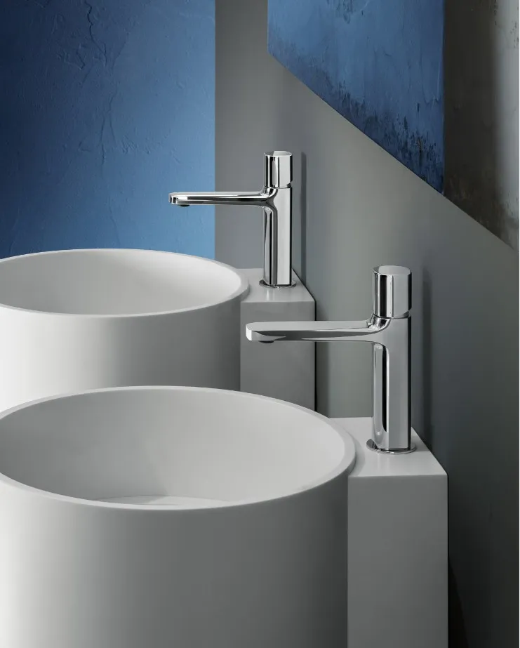 Изделия имеют простые, плавные формы, которые эргономичны и приятны на ощупь. Разработаны в матово-белом и хромированном хроматических вариантах, а также в варианте с рычагом.