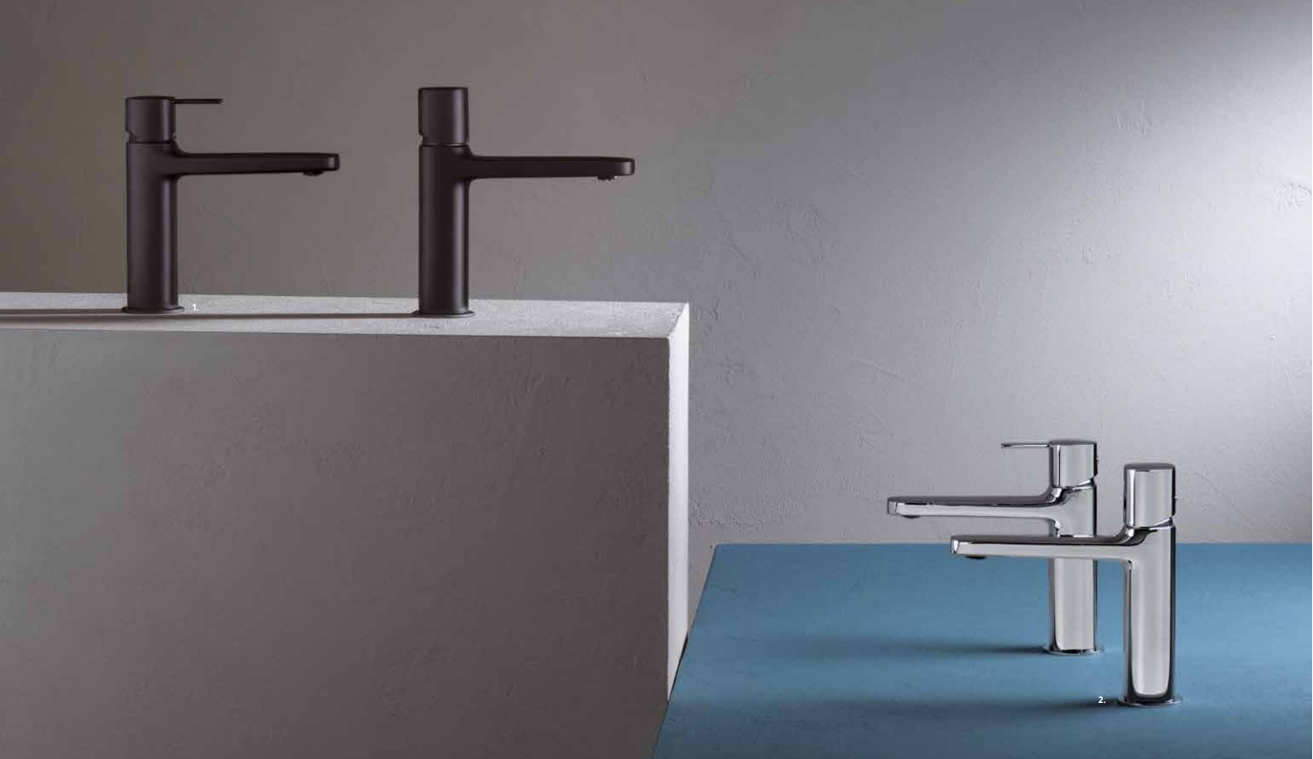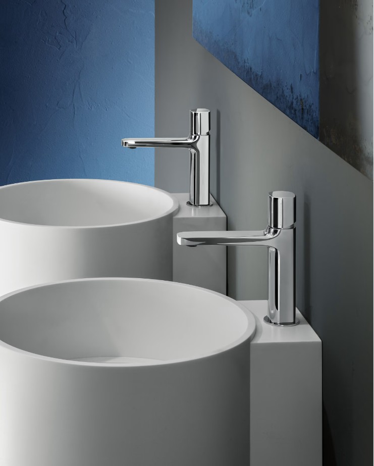 Изделия имеют простые, плавные формы, которые эргономичны и приятны на ощупь. Разработаны в матово-белом и хромированном хроматических вариантах, а также в варианте с рычагом.