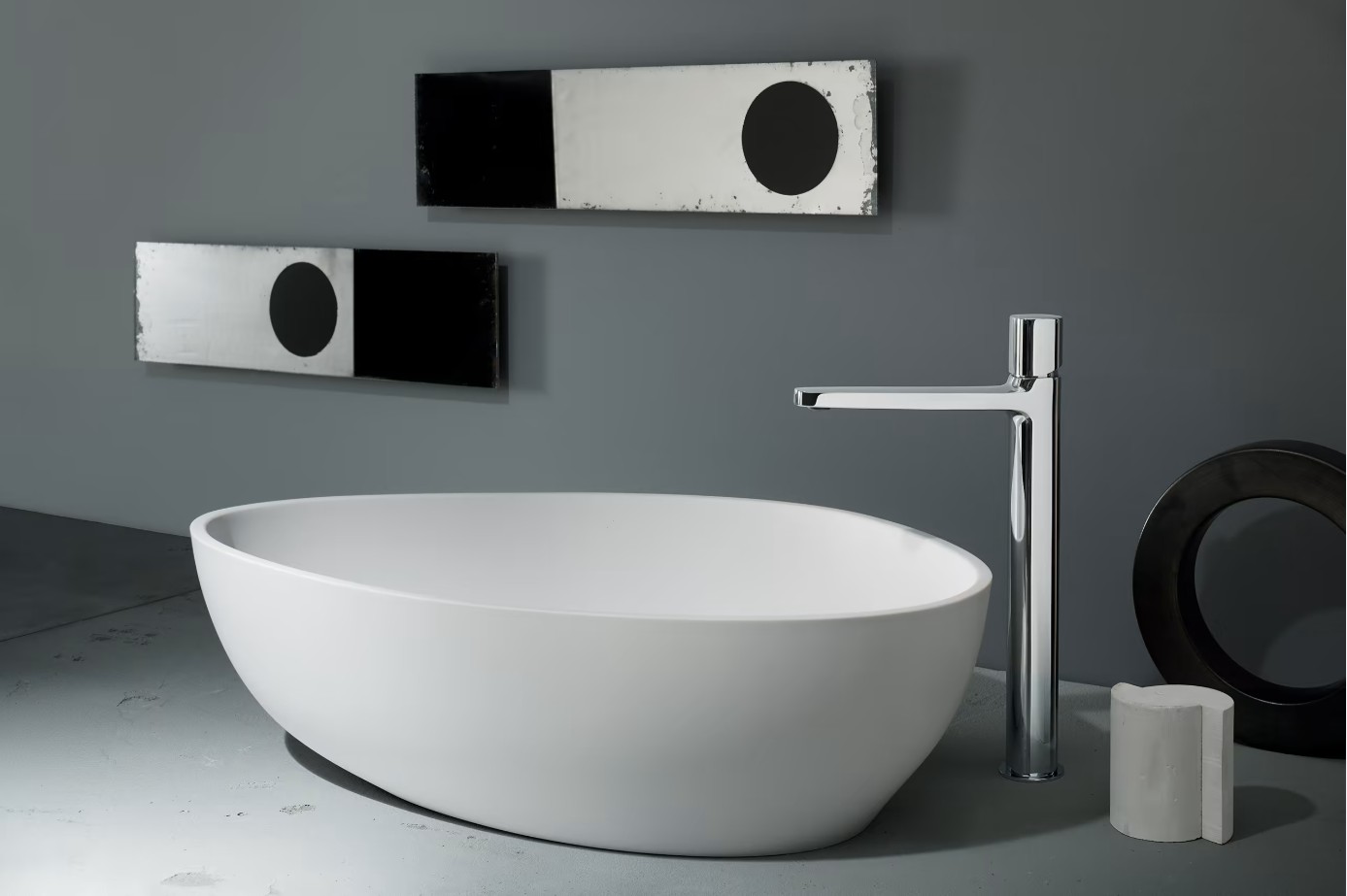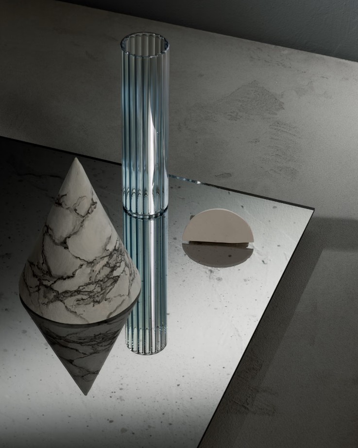 Округлое квадратное сечение изделий коллекции Lame от Fantini вдохновлено формами криволинейных координат и так называемых суперэллипсов, которые были получены в результате исследований математика Габриэля Ламе.