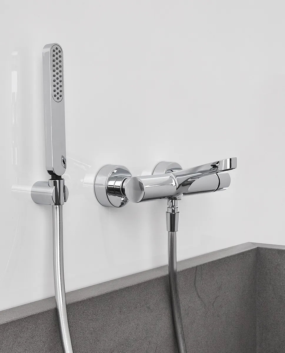 Коллекция смесителей Nomos Go дополнена ванной и душем, которые сочетаются с различными формами современных умывальников, обеспечивая абсолютную свободу дизайна, особенно для индивидуальных проектов.
