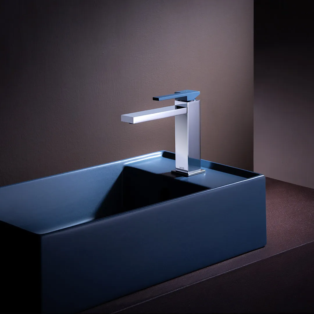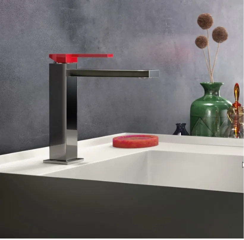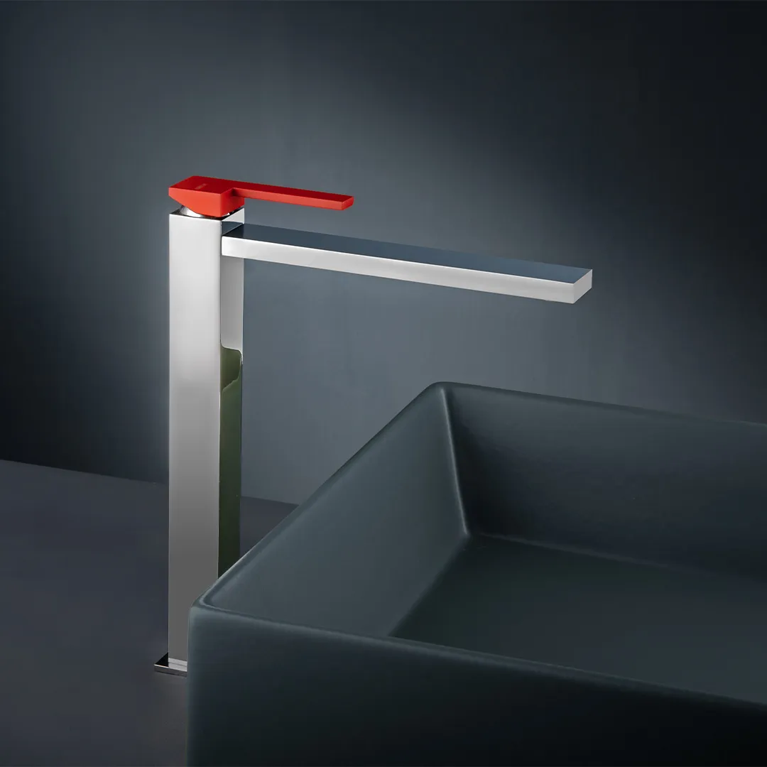 После успеха коллекции Color на рынок выходит коллекция Color Cube - квадратная версия оригинального смесителя с цветным рычагом.