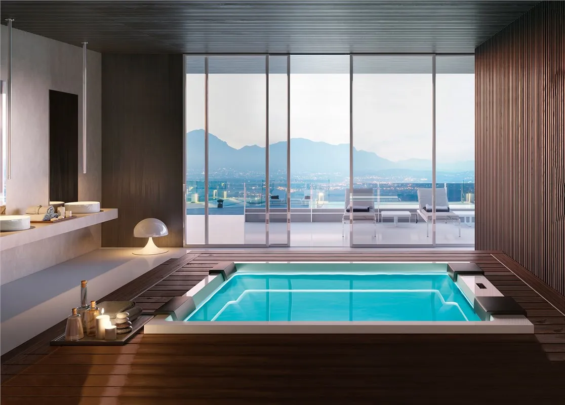 Будь то терраса, сад, ванная комната или гостиная, гидромассажная ванна коллекции Muse, созданная дизайнером Марком Сэдлером, создана для того, чтобы сделать ваше пространство поистине исключительным. Это итальянское изделие может быть установлено как во встроенном, так и отдельно стоящем исполнении, с отделкой панелями VTR или темным деревом. Мы настоятельно рекомендуем использовать термозащиту для поддержания температуры воды и поддержания ее чистоты.