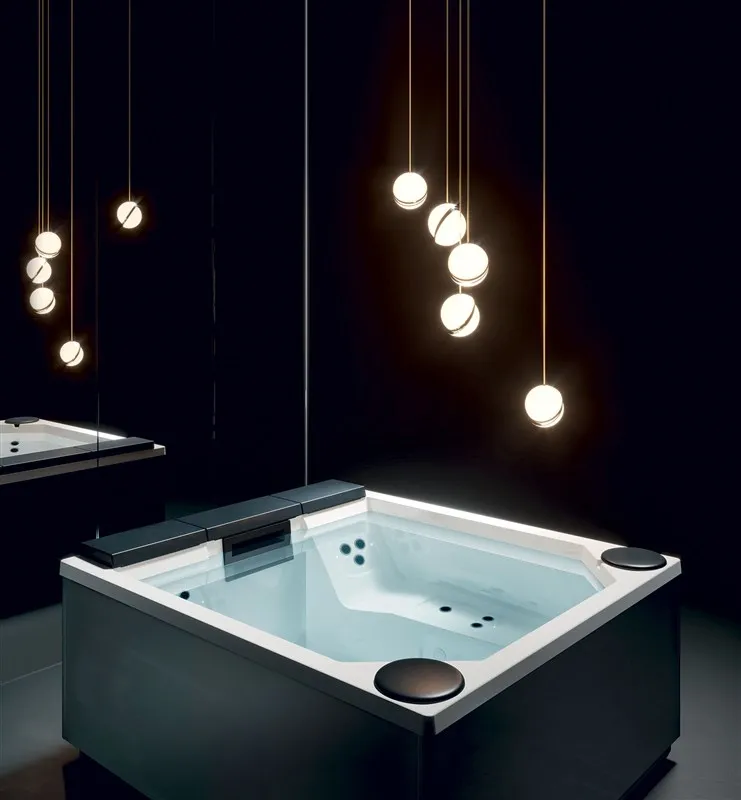 Насадки расположены таким образом, чтобы создать приятный визуальный и функциональный эффект. Дополнительной особенностью является эффект хромотерапии, который достигается за счет разноцветной светодиодной подсветки, которая изящно оживляет воду. Это создает ощущение полного погружения и релаксации, как в одиночестве, так и в компании других людей.