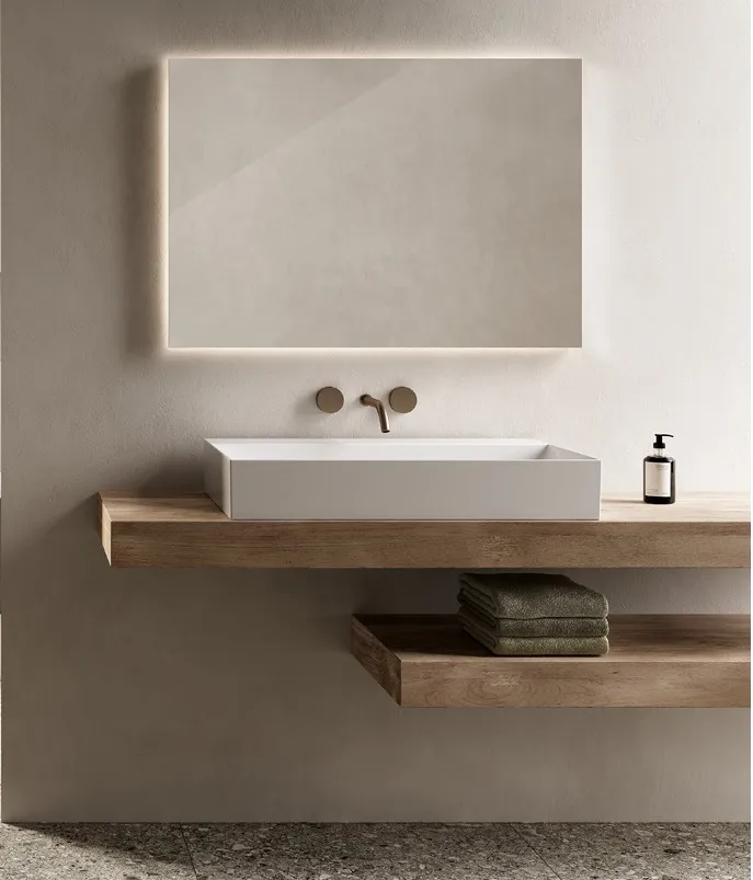 Ассортимент Bahia13 дополнен шкафчиками с выдвижными ящиками, 2-х глубинными и модульными, с размерами раковин и доступными в 5 натуральных цветах.