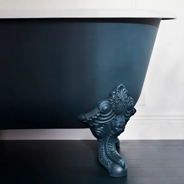 Знаменитая ванна Jacob Delafon в форме львиной лапы выполнена в цвете Gris Intense, чтобы соответствовать остальной коллекции. Её обволакивающая форма с двумя изгибами и глубокая чаша располагают к расслаблению и наслаждению моментом. Благородный материал — эмалированный чугун — сохраняет воду горячей. За ней легко ухаживать, и она на 100 % пригодна для вторичной переработки.Керамика, напоминающая о тенденциях прошлого