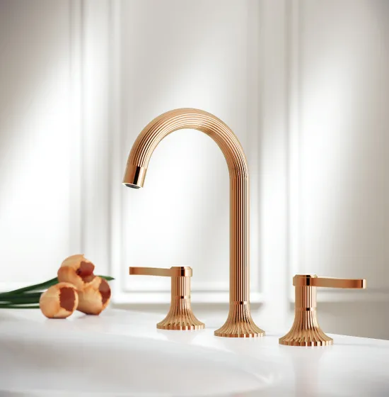 Чистота форм и утонченная элегантность – основные приметы коллекции. Тонкие каннелюры украшают корпус и задают неповторимый облик изделий – от основания до излива. Мягкие покатые линии смесителя уравновешивают общую прямолинейность дизайна.