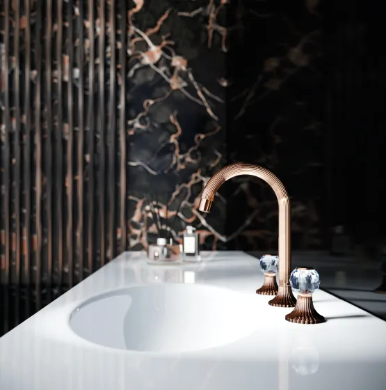 Игривые переливы цвета и калейдоскоп лучей словно бросают вызов величаво-сдержанной эстетике античных храмов и строгим силуэтам смесителей.