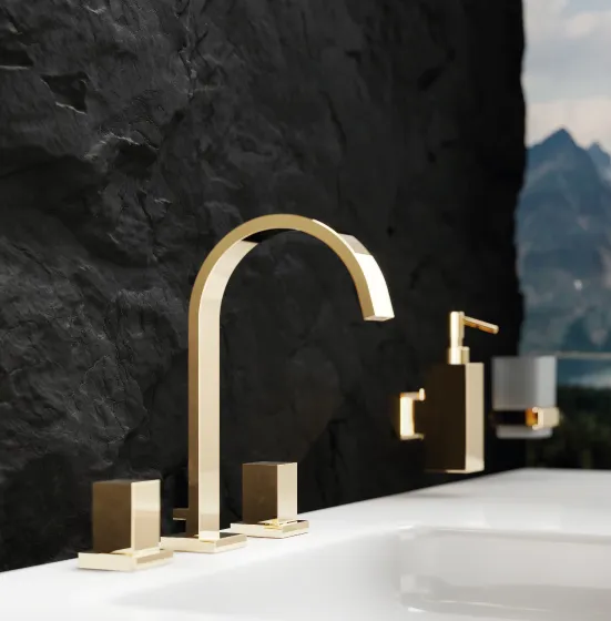 В серии Empire Royal Crystal лаконичный стиль линейки Empire преобразился до неузнаваемости благодаря изысканному дополнению – гранёным хрусталём в форме перевёрнутой пирамиды. Хрустальными наконечниками увенчаны ручки смесителей для раковины и ванны, запорные и переключающие вентили, мерцание и блеск хрусталя стали неизменными атрибутами всех изделий серии Empire Royal Crystal, разработанной Оливером Йоргером. Неизменным остался ключевой элемент дизайна линейки Empire – подчёркнуто тонкая, практически плоская форма излива смесителя.