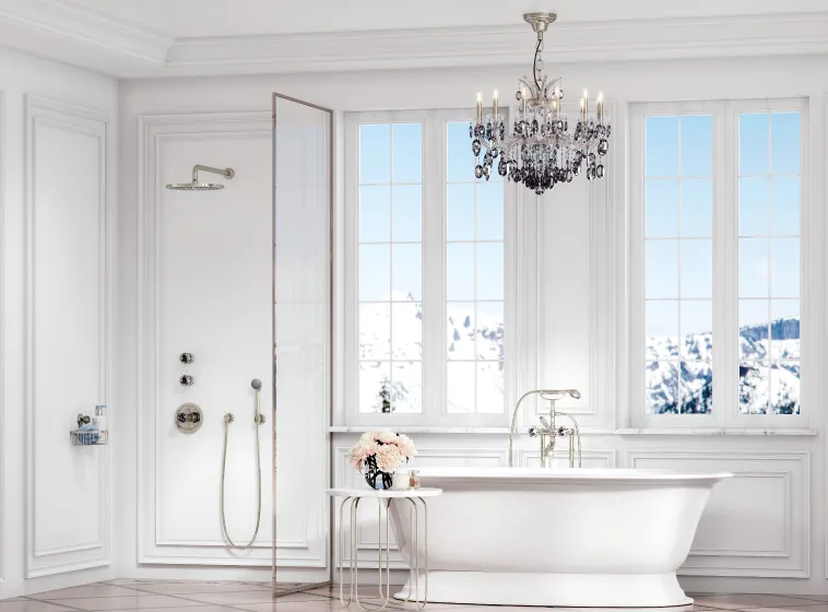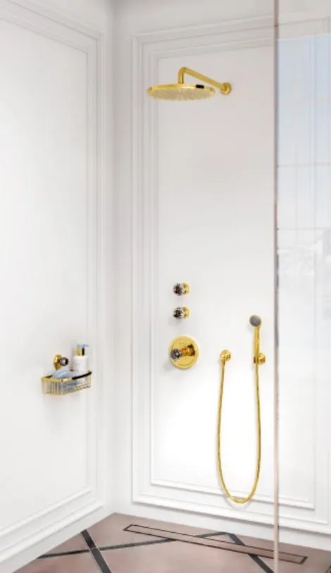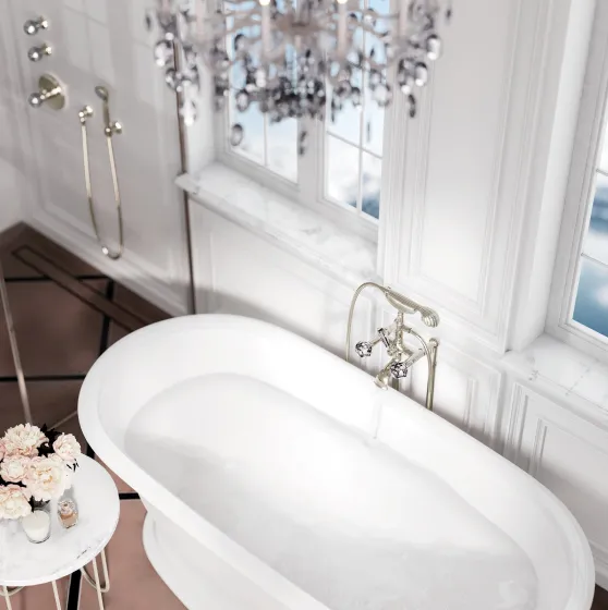 В очертаниях корпуса смесителей и розеток считывается силуэт цветка. Цветочные мотивы впервые использовал в декоре ванной комнаты Герхард Йоргер, представитель третьего поколения творческой династии. В серии Florale Crystal нежный и романтичный образ раскрывается во всём блеске своей красоты.