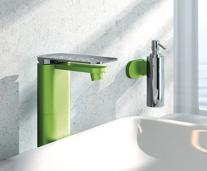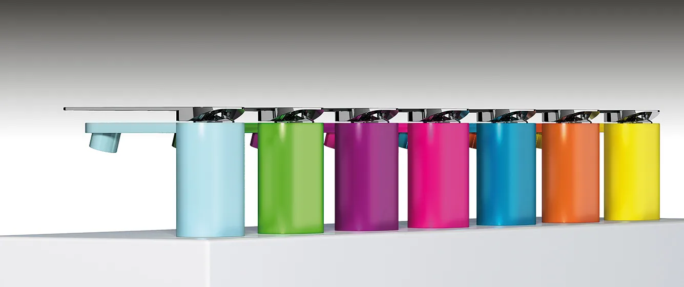 Ещё одна «изюминка» серии – яркая палитра декоров для корпуса смесителя. Кроме традиционных финишных отделок доступны ещё 7 акцентных цветов: оранжевый, жёлтый, бирюзовый, сочное яблоко, розовый, фиолетовый и небесно-голубой.