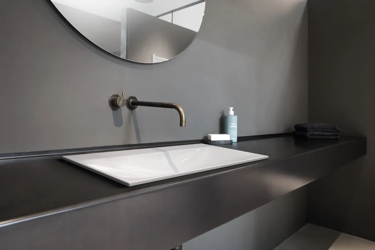 Текучий, филигранный дизайн позволяет раковине визуально сливаться с консолью или мебелью.