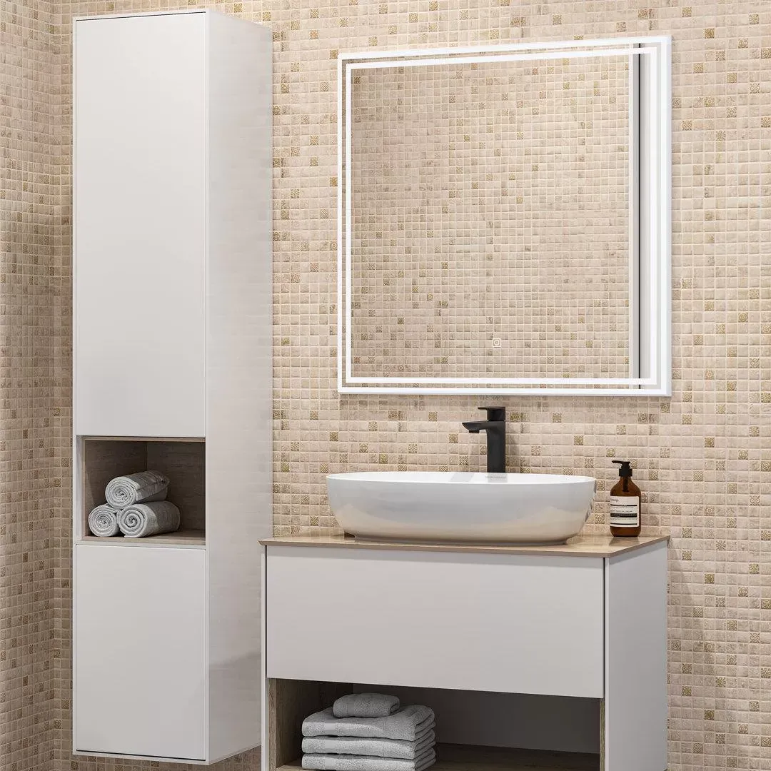 Зеркала Plaza призваны дополнить обстановку в соответствующих стилях. В линейке рама зеркала выполнена из массива ясеня с благородным эффектом открытой поры, а в качестве рамы предлагает эффектную металлическую структуру с открытой полкой в чёрном матовом цвете. Оба зеркала оснащены контурной LED-подсветкой – управлять ей можно при помощи бесконтактного выключателя в нижней части зеркала.