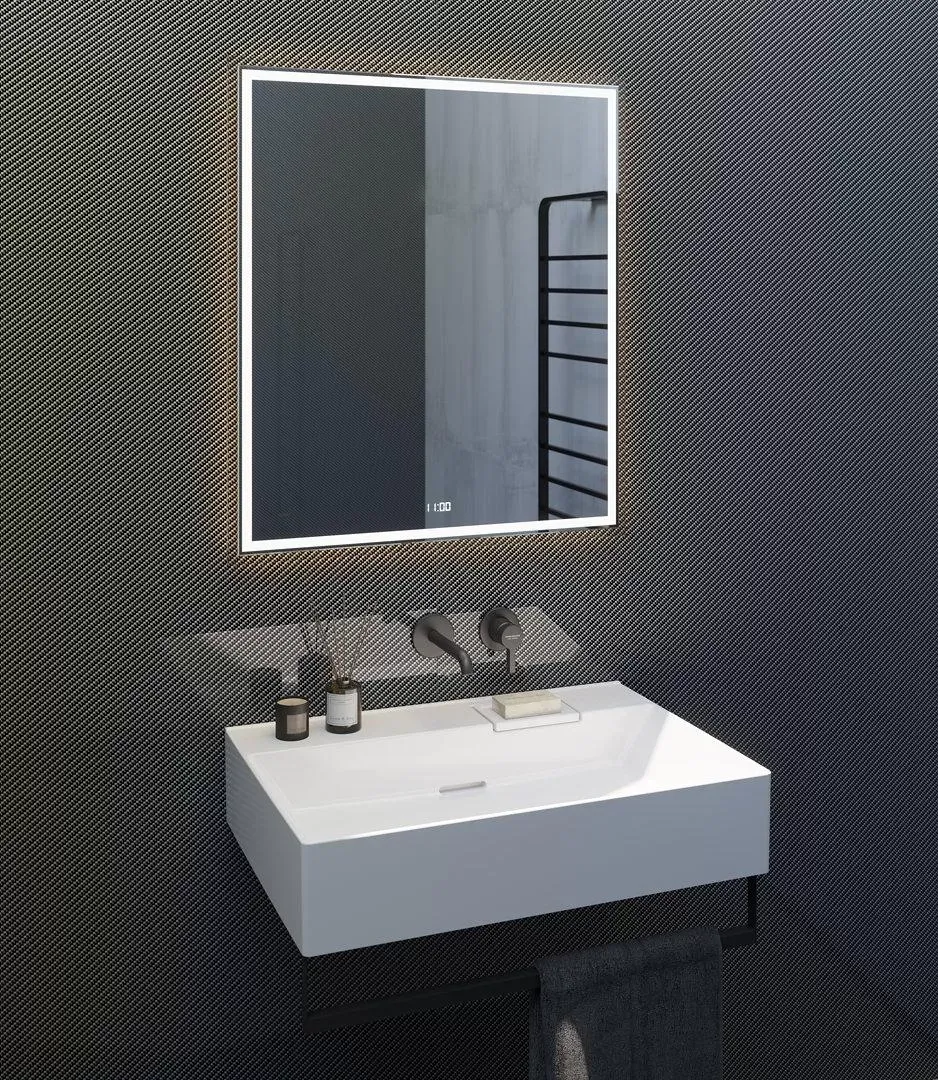 Прямоугольное зеркало Techno от Kerama Marazzi готово стать эстетическим центром ванной комнаты благодаря сенсорной подсветке по всему периметру.